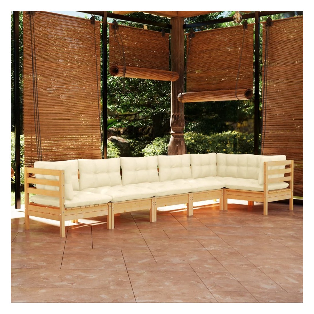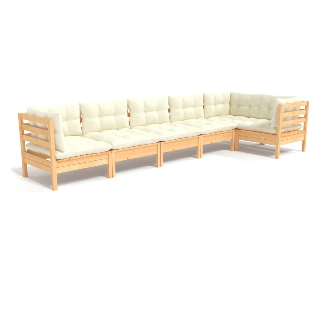 Salon de jardin 6 pcs avec coussins crème bois de pin