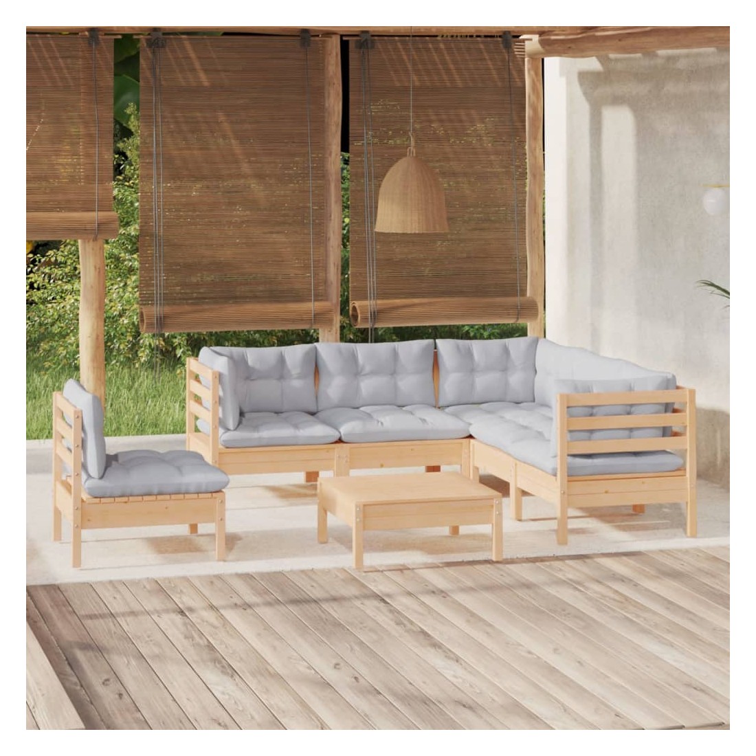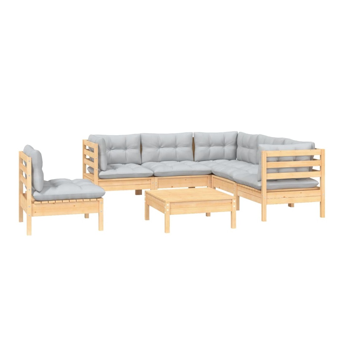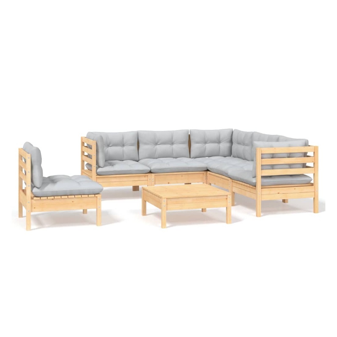 Salon de jardin 6 pcs avec coussins gris bois de pin