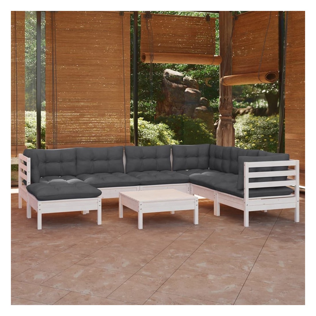 Ce salon de jardin est un excellent choix pour vous détendre et profiter du beau temps, faire une sieste ou discuter avec votre famille ou vos amis. Le salon de patio est fabriqué en bois de pin massif, ce qui le rend robuste et stable. Les coussins ajoutent un confort supplémentaire. Vous pouvez le combiner avec d’autres segments modulaires pour créer vos propres configurations de salon de jardin ! Remarque : afin de prolonger la durée de vie des meubles d'extérieur, nous vous recommandons de les protéger avec une housse imperméable.
