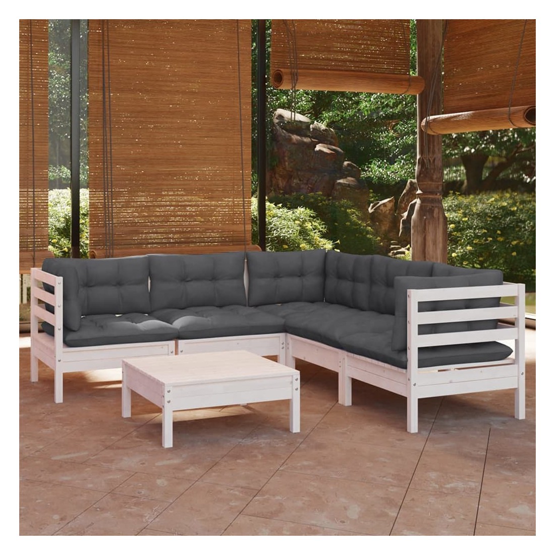 Ce salon de jardin est un excellent choix pour vous détendre et profiter du beau temps, faire une sieste ou discuter avec votre famille ou vos amis. Le salon de patio est fabriqué en bois de pin massif, ce qui le rend robuste et stable. Les coussins ajoutent un confort supplémentaire. Vous pouvez le combiner avec d’autres segments modulaires pour créer vos propres configurations de salon de jardin ! Remarque : afin de prolonger la durée de vie des meubles d'extérieur, nous vous recommandons de les protéger avec une housse imperméable.