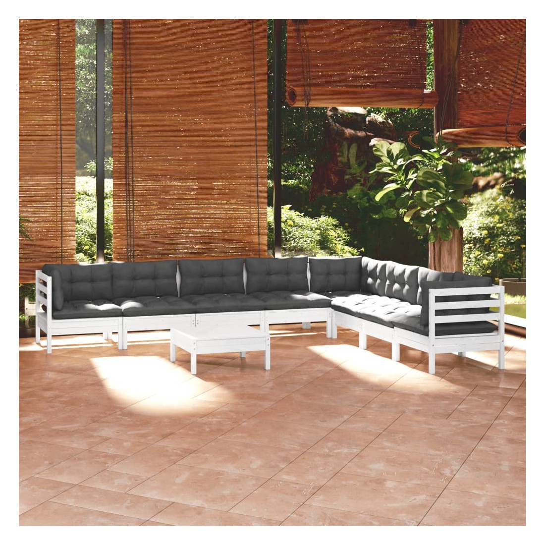 Ce salon de jardin est un excellent choix pour vous détendre et profiter du beau temps, faire une sieste ou discuter avec votre famille ou vos amis. Le salon de patio est fabriqué en bois de pin massif, ce qui le rend robuste et stable. Les coussins ajoutent un confort supplémentaire. Vous pouvez le combiner avec d’autres segments modulaires pour créer vos propres configurations de salon de jardin ! Remarque : afin de prolonger la durée de vie des meubles d'extérieur, nous vous recommandons de les protéger avec une housse imperméable.