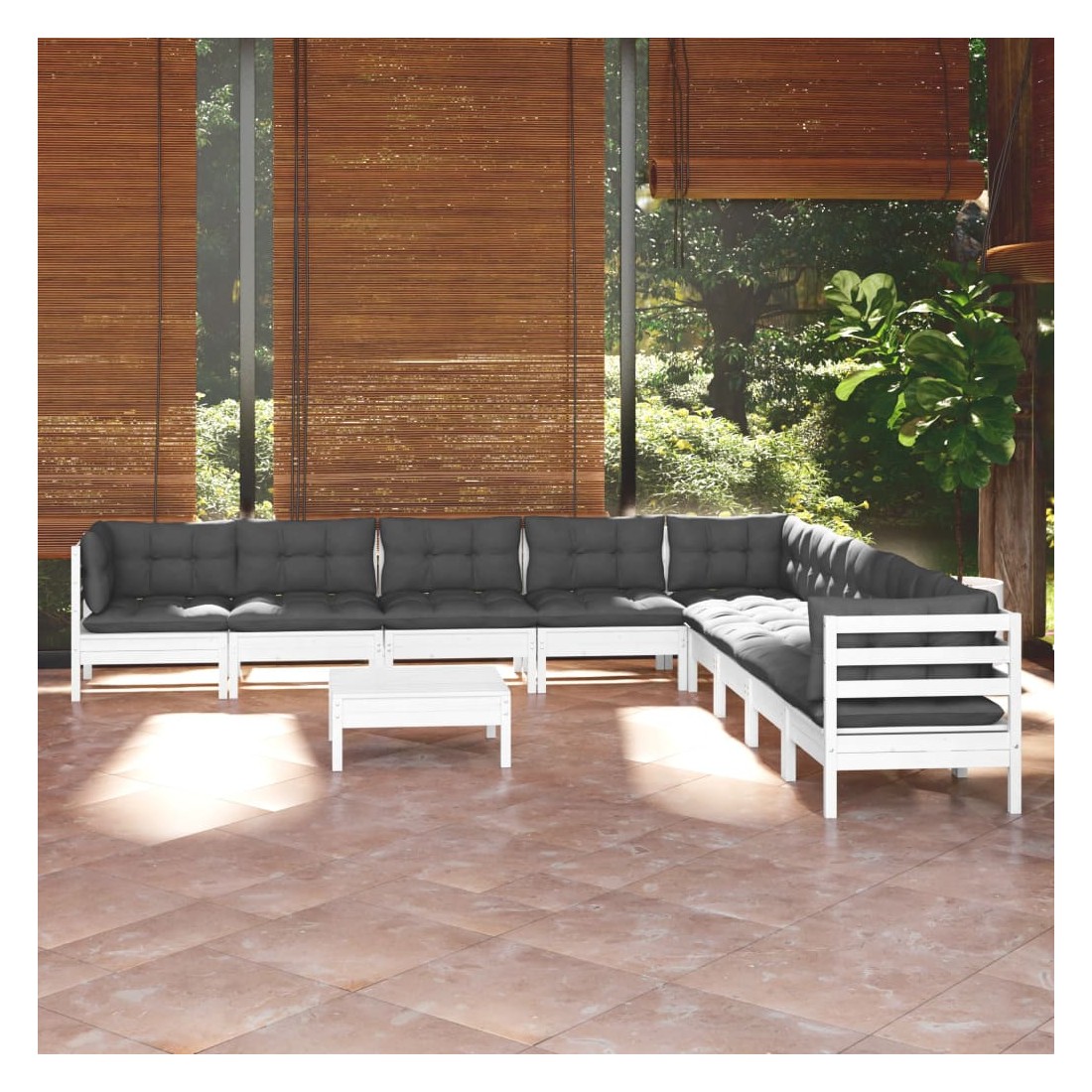 Ce salon de jardin est un excellent choix pour vous détendre et profiter du beau temps, faire une sieste ou discuter avec votre famille ou vos amis. Le salon de patio est fabriqué en bois de pin massif, ce qui le rend robuste et stable. Les coussins ajoutent un confort supplémentaire. Vous pouvez le combiner avec d’autres segments modulaires pour créer vos propres configurations de salon de jardin ! Remarque : afin de prolonger la durée de vie des meubles d'extérieur, nous vous recommandons de les protéger avec une housse imperméable.