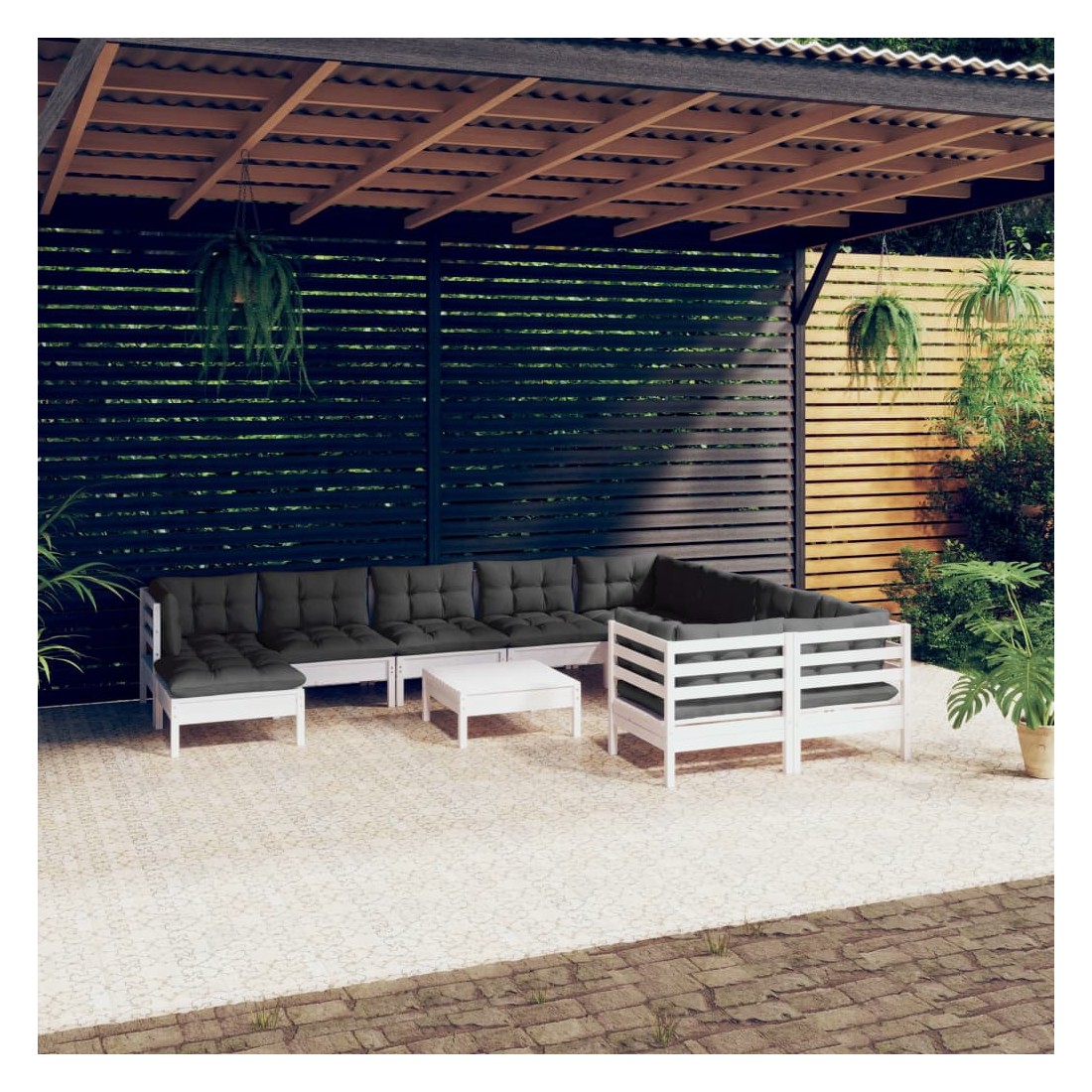 Cet ensemble de salon de jardin en bois est un choix excellent pour vous détendre et profiter du bon temps, faire une sieste ou discuter avec votre famille ou vos amis. Le salon de patio est fabriqué en bois de pin massif, ce qui le rend robuste et stable. Les coussins ajoutent un confort supplémentaire. Vous pouvez le combiner avec d’autres segments modulaires pour créer vos propres configurations de salon de jardin ! Remarque : afin de prolonger la durée de vie des meubles d'extérieur, nous vous recommandons de les protéger avec une housse imperméable.