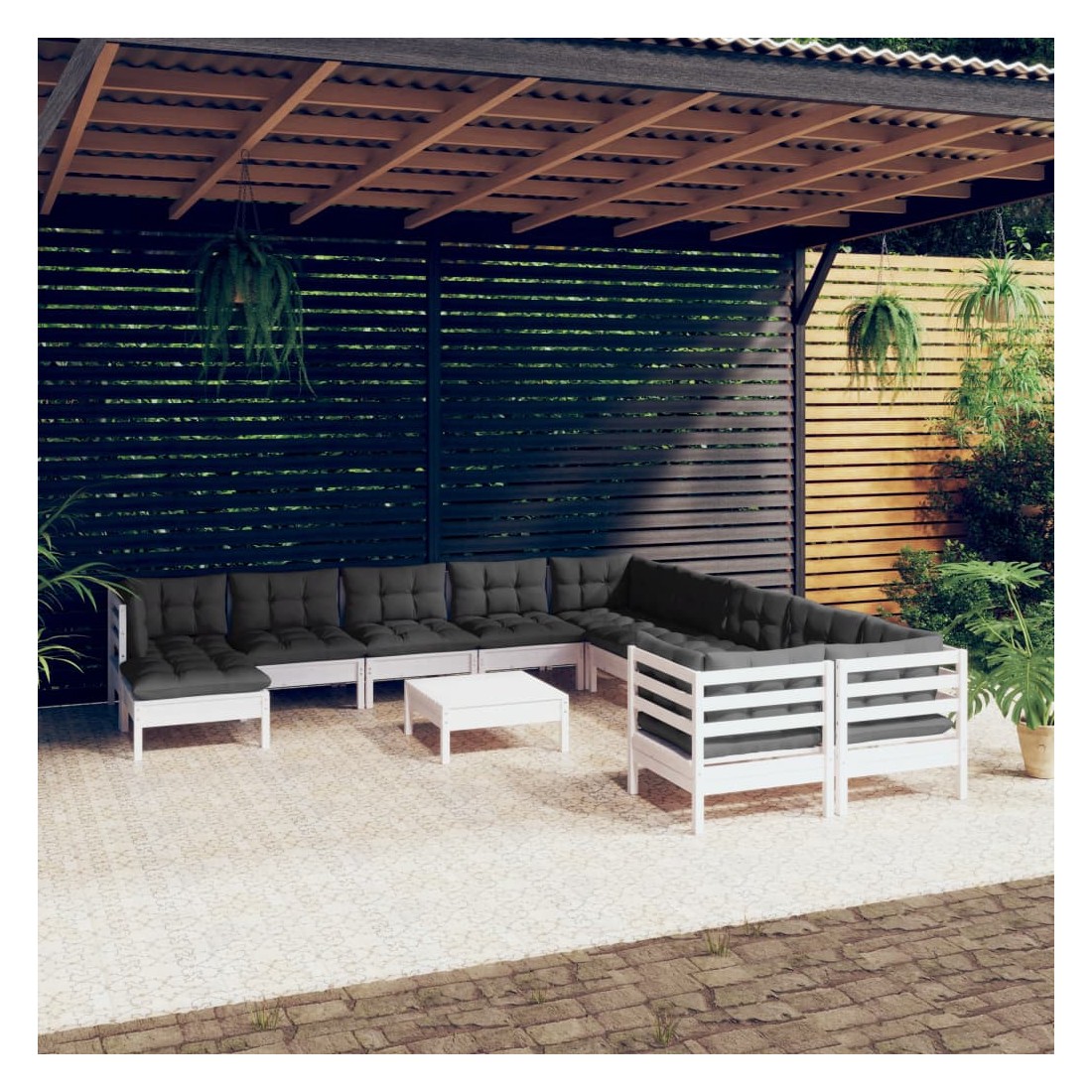 Cet ensemble de salon de jardin en bois est un choix excellent pour vous détendre et profiter du bon temps, faire une sieste ou discuter avec votre famille ou vos amis. Le salon de patio est fabriqué en bois de pin massif, ce qui le rend robuste et stable. Les coussins ajoutent un confort supplémentaire. Vous pouvez le combiner avec d’autres segments modulaires pour créer vos propres configurations de salon de jardin ! Remarque : afin de prolonger la durée de vie des meubles d'extérieur, nous vous recommandons de les protéger avec une housse imperméable.