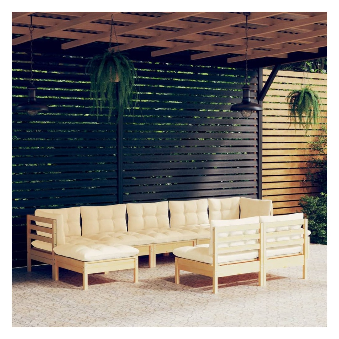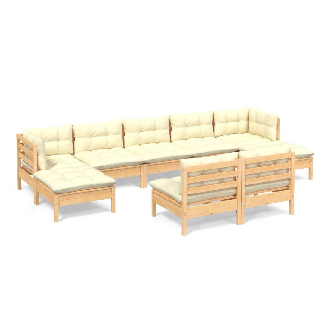 Salon de jardin 9 pcs avec coussins crème bois de pin