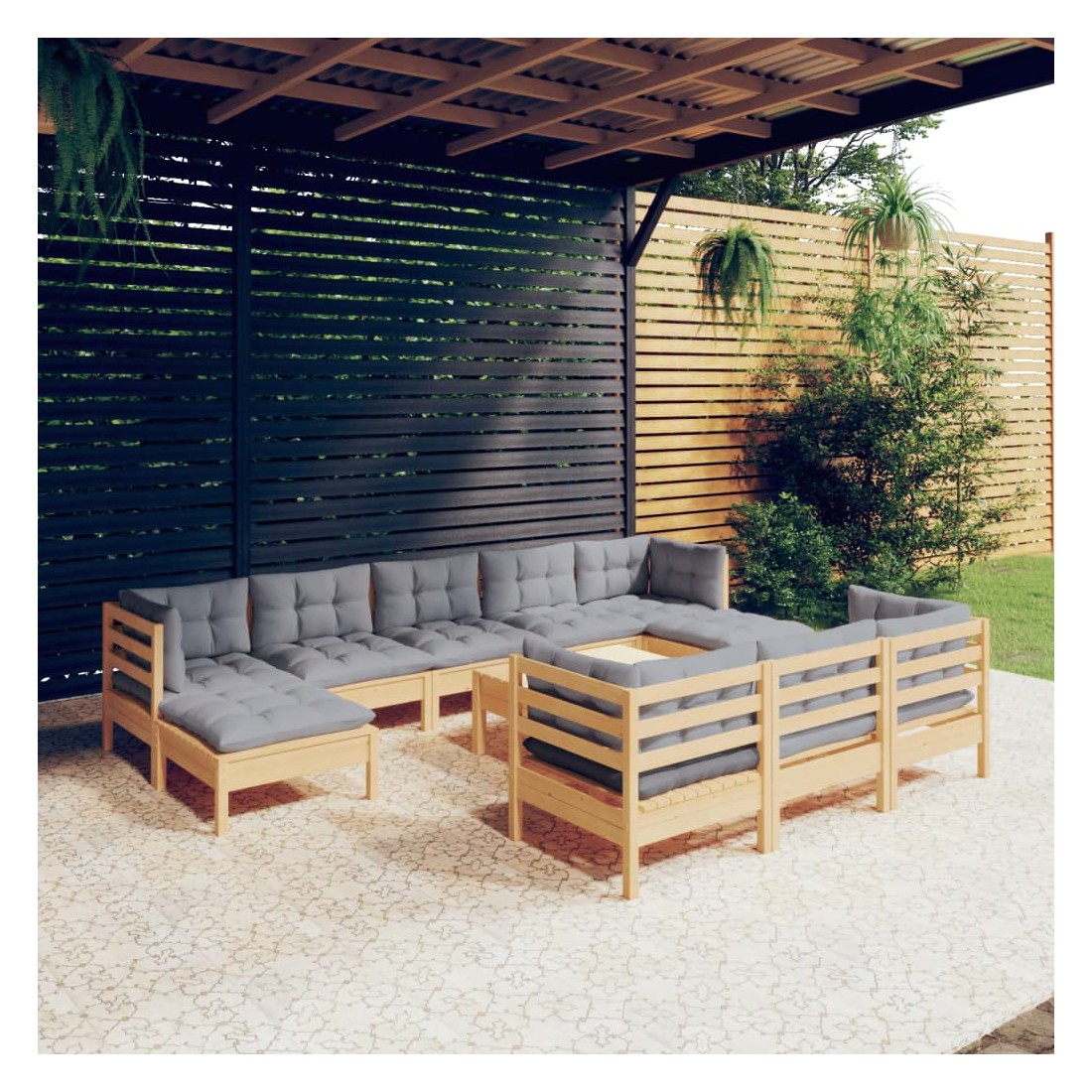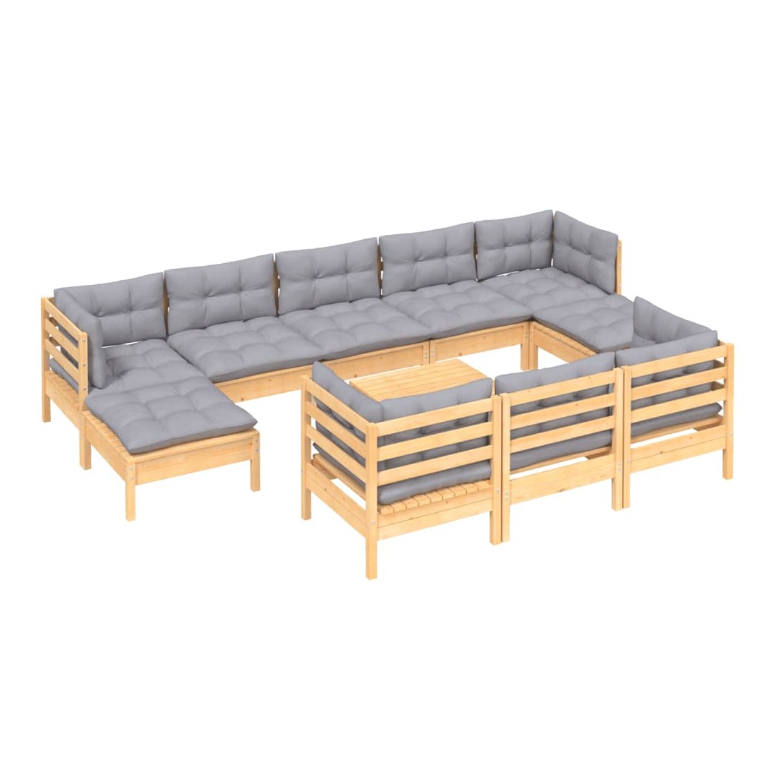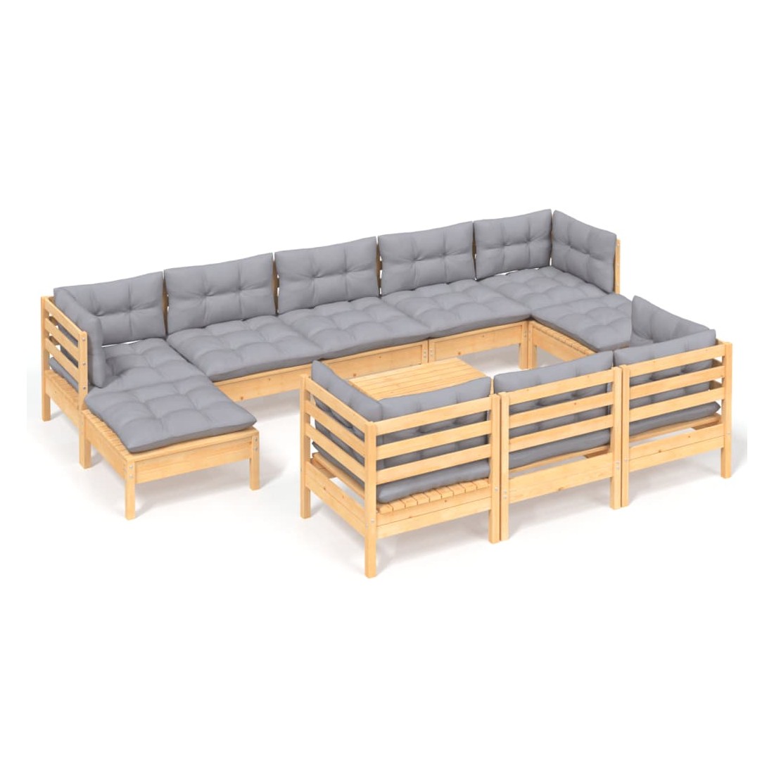 Salon de jardin 11 pcs avec coussins gris Bois de pin solide