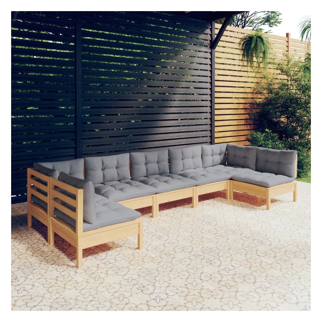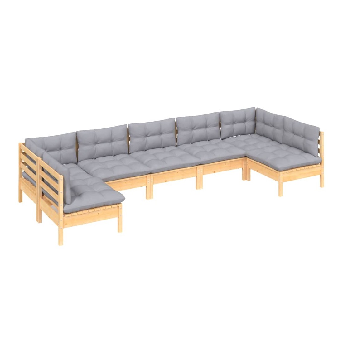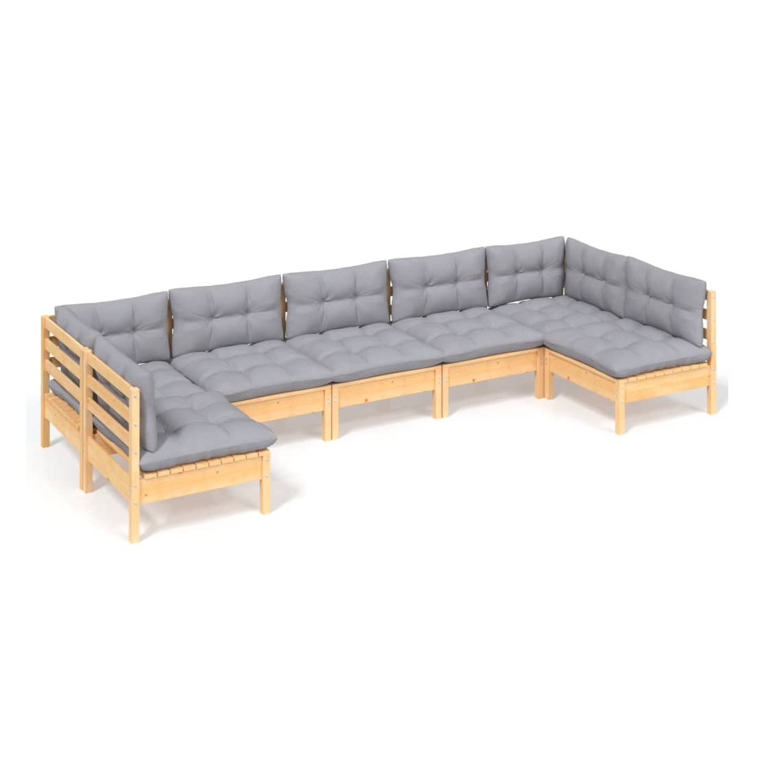 Salon de jardin 7 pcs avec coussins gris bois de pin massif