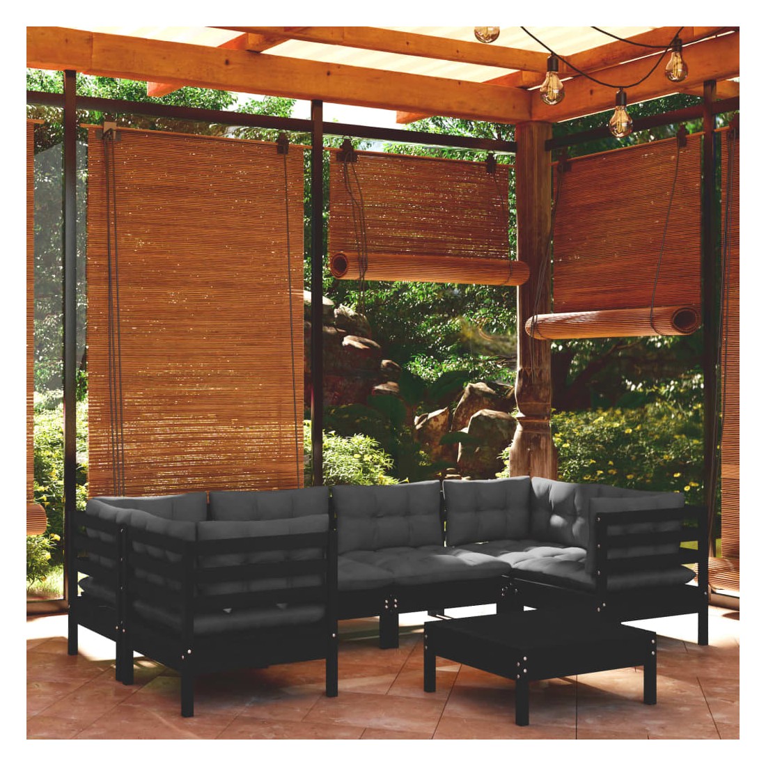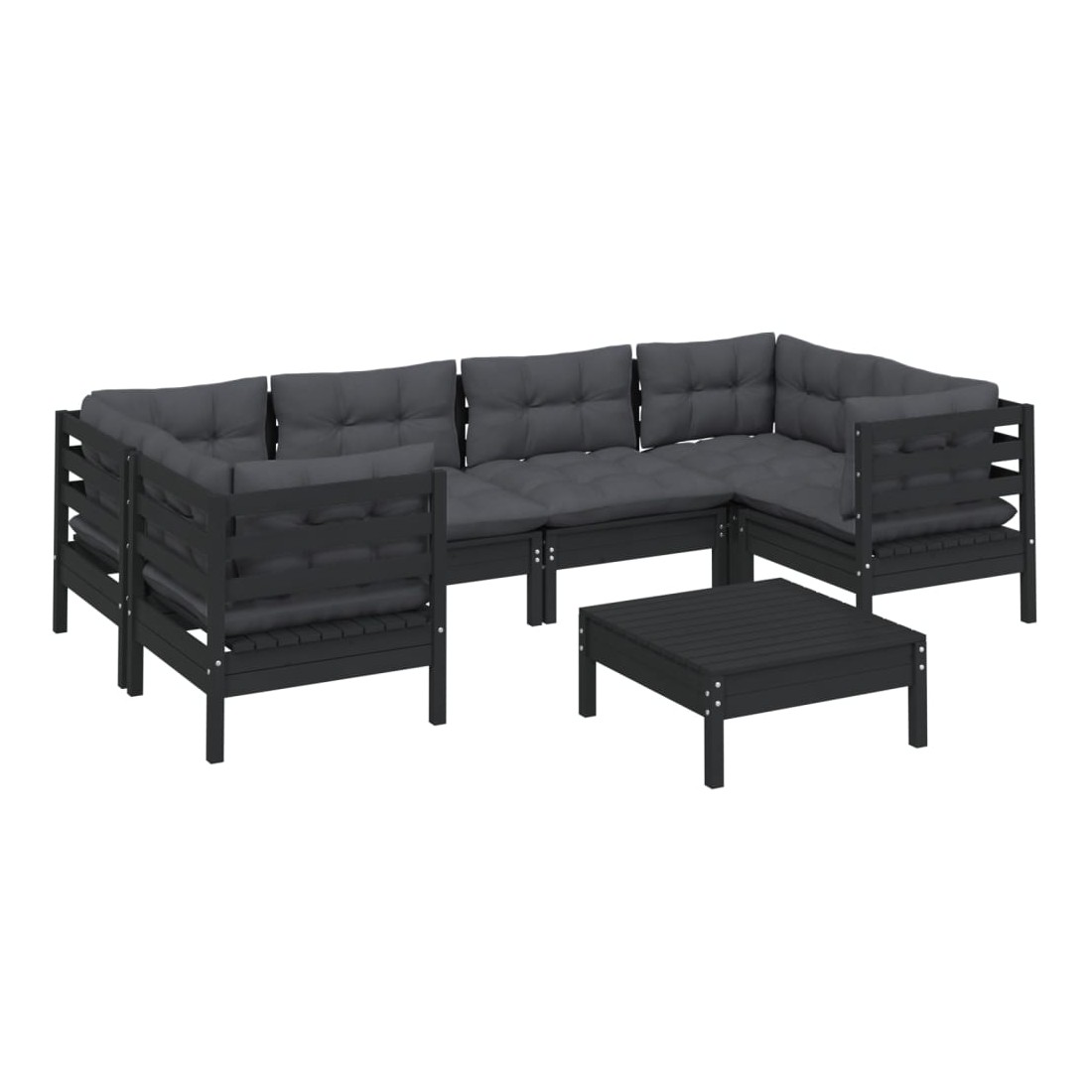 Salon de jardin 7 pcs avec coussins Noir Bois de pin
