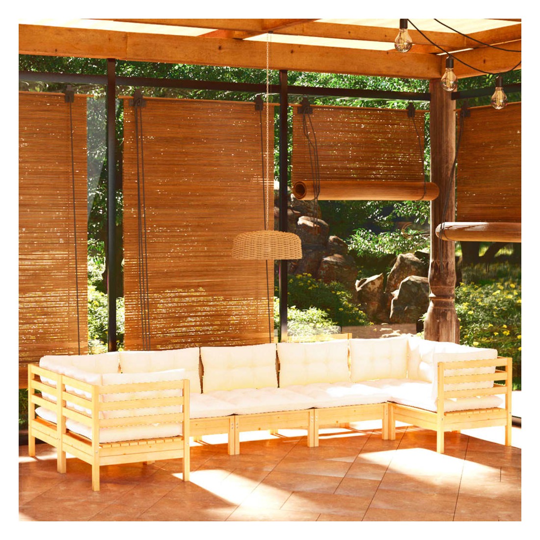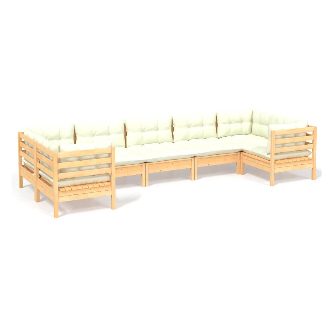 Salon de jardin 7 pcs avec coussins crème bois de pin