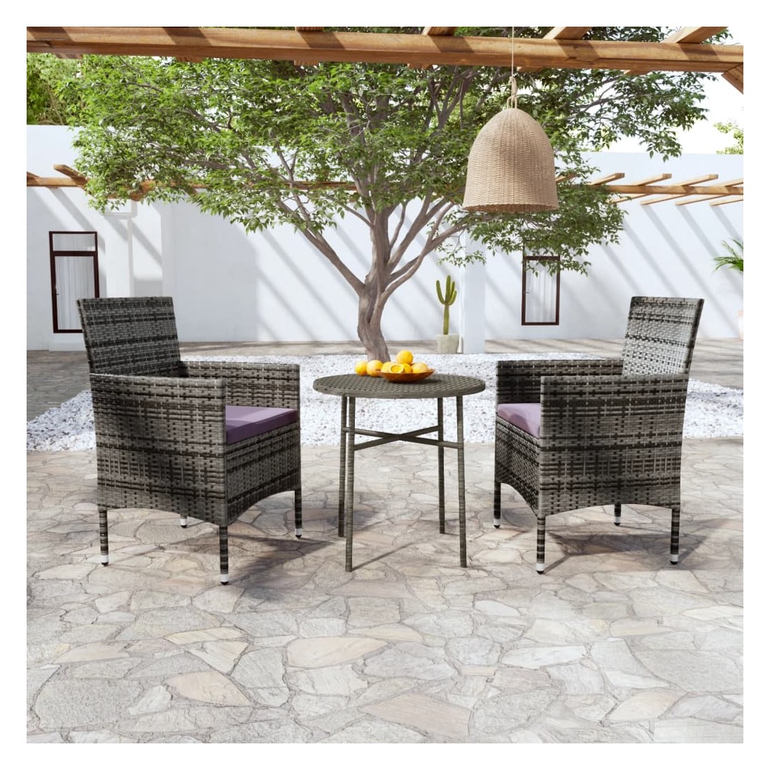 Ensemble à manger de jardin 3 pcs Résine tressée Gris
