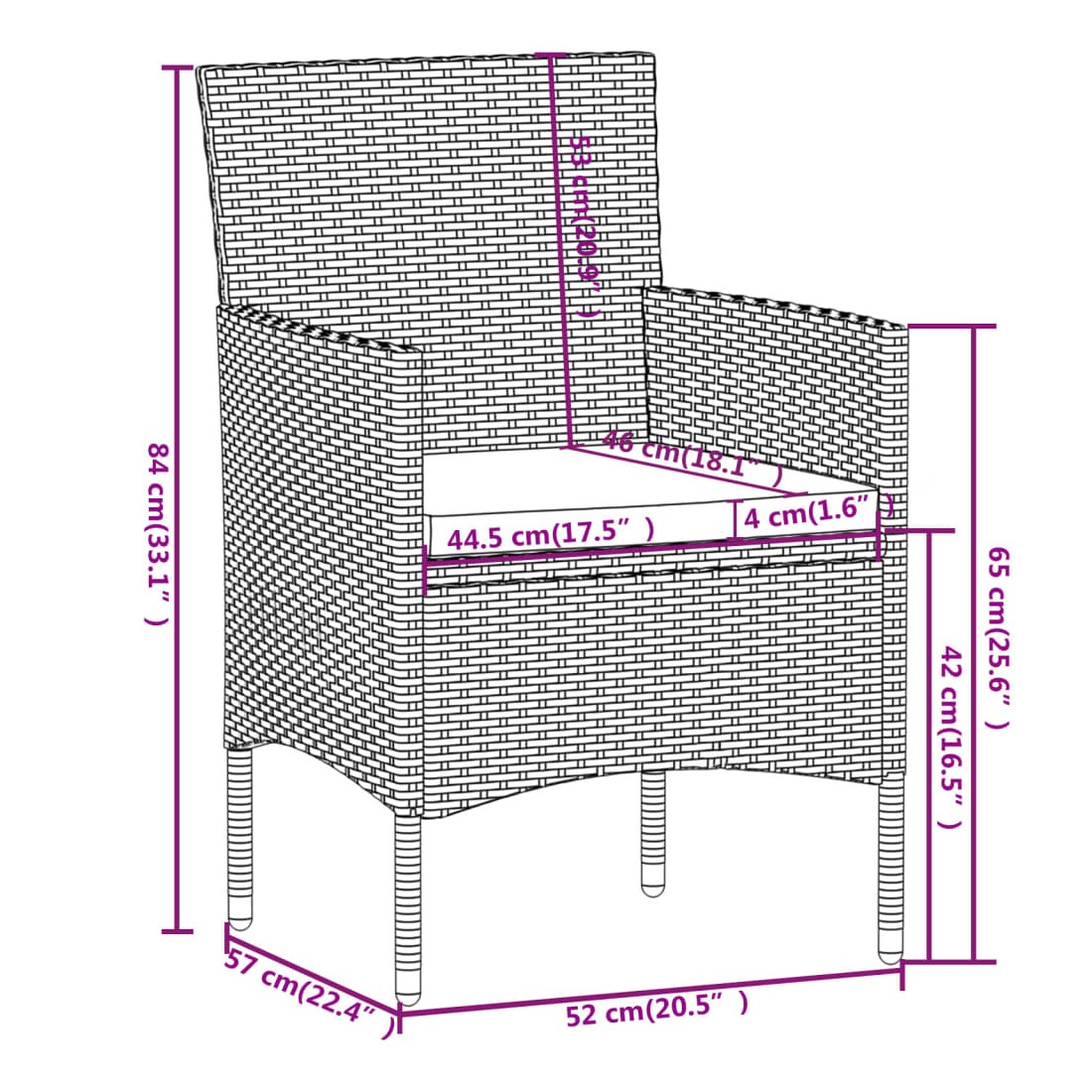 Profitez d'un bon repas ou d'un thé l'après-midi dans votre espace extérieur avec cet ensemble de salle à manger de jardin en résine tressée ! Ayant un design élégant, il deviendra le point central de votre jardin et de votre terrasse ! L'ensemble de salle à manger d'extérieur pratique a un cadre en acier enduit de poudre recouvert de résine tressée, ce qui le rend durable et adapté à un usage quotidien. Grâce à leur construction légère, tous les articles sont faciles à déplacer. La table est excellente pour garder les boissons et la nourriture à portée de main. Les chaises sont conçues avec des dossiers et des accoudoirs incurvés pour une meilleure forme ergonomique pour un maximum de confort. De plus, les coussins bien rembourrés sont inclus pour un soutien supplémentaire et la houss