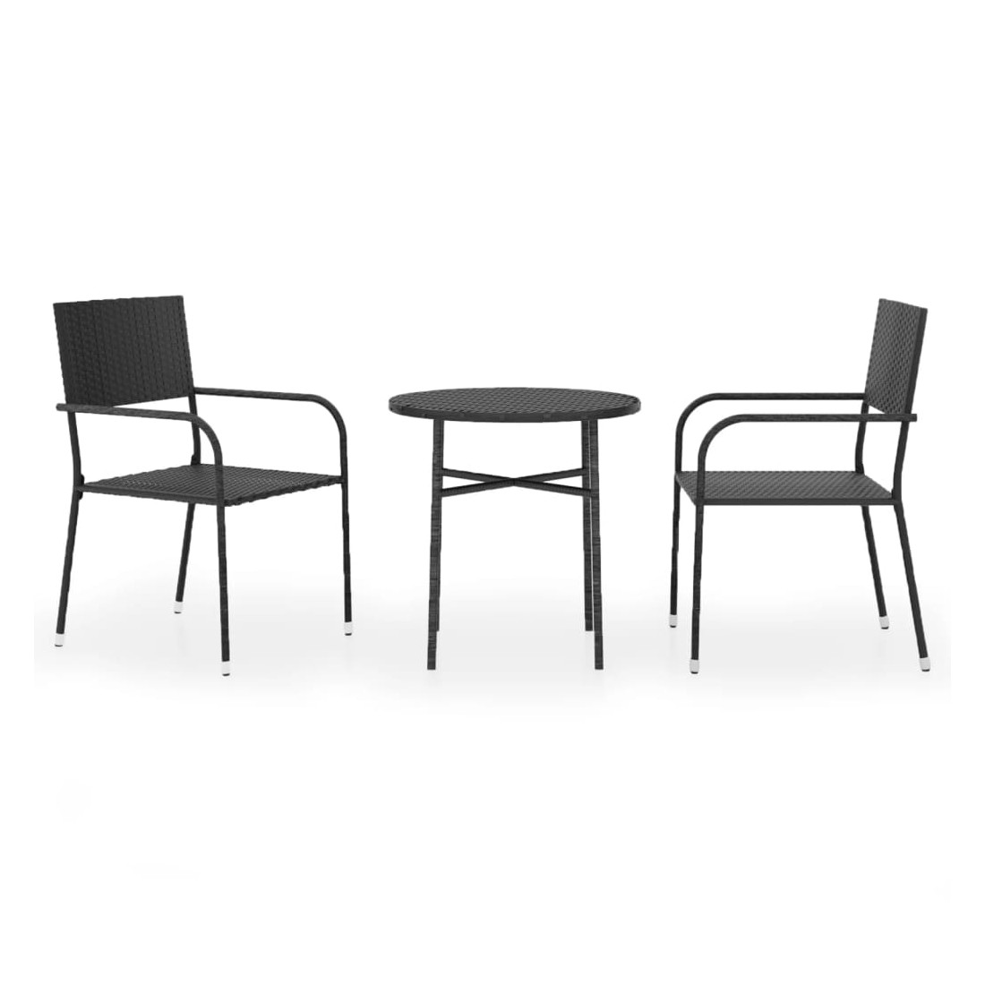 Ensemble à manger de jardin 3 pcs Résine tressée Noir