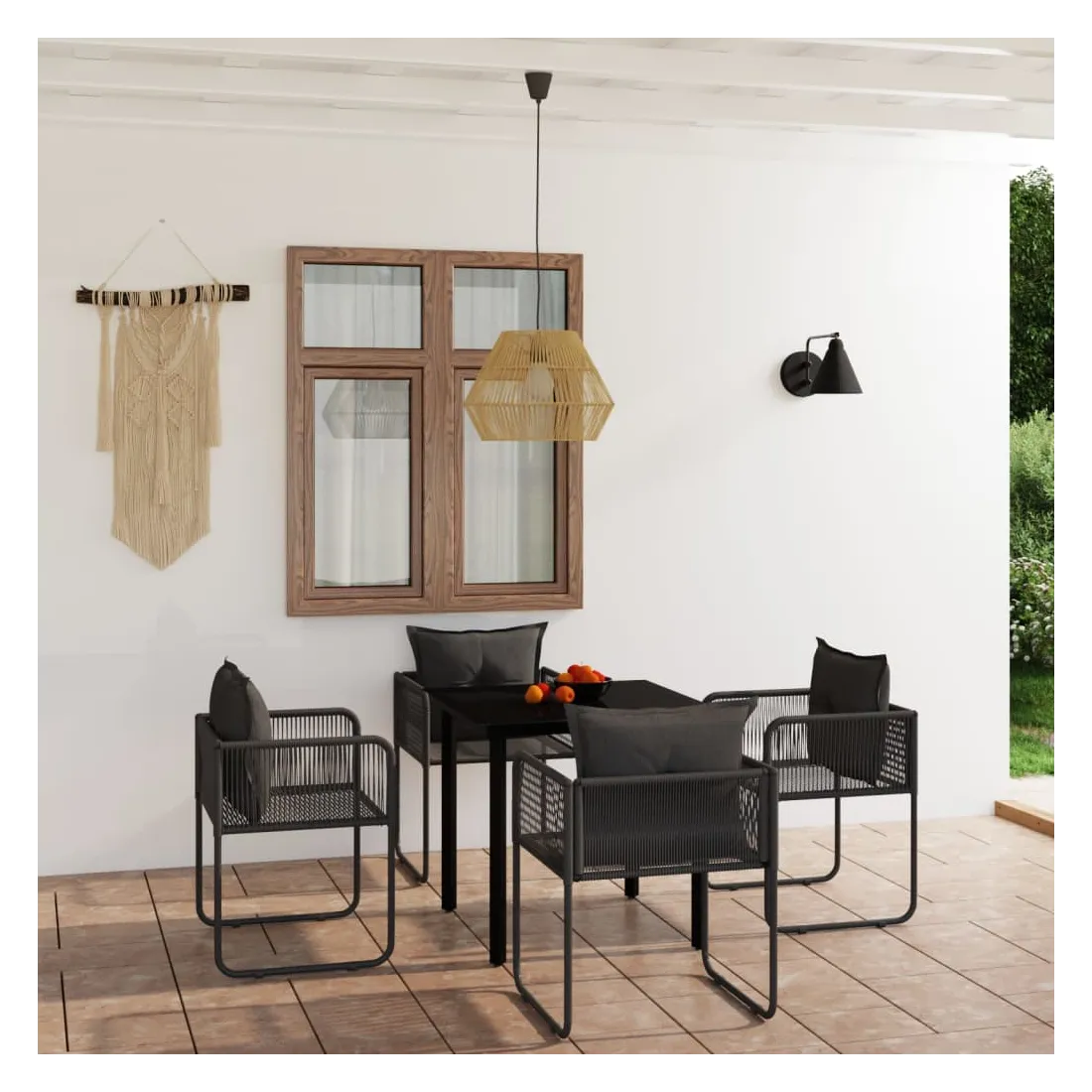 Créez une esthétique convaincante et uniforme dans votre espace extérieur avec cet ensemble de salle à manger de jardin ! Cet ensemble de repas de jardin est fait de cadre en acier enduit de poudre, ce qui le rend robuste et stable pour une utilisation quotidienne à l’extérieur. Le dessus de table en verre lisse est facile à nettoyer avec un chiffon humide et est parfait pour placer des repas, des boissons et d'autres objets décoratifs. Les chaises de patio sont en résine tressée, ce qui les rend légères et résistantes à l’eau. De plus, les coussins de dossier offrent un confort ultime pour vos moments de détente. Remarque : nous vous recommandons de couvrir le mobilier pendant la pluie, la neige ou le gel. Remarque : afin de prolonger la durée de vie des meubles d'extérieur, nous vous recommandons de les protéger avec une housse imperméable.