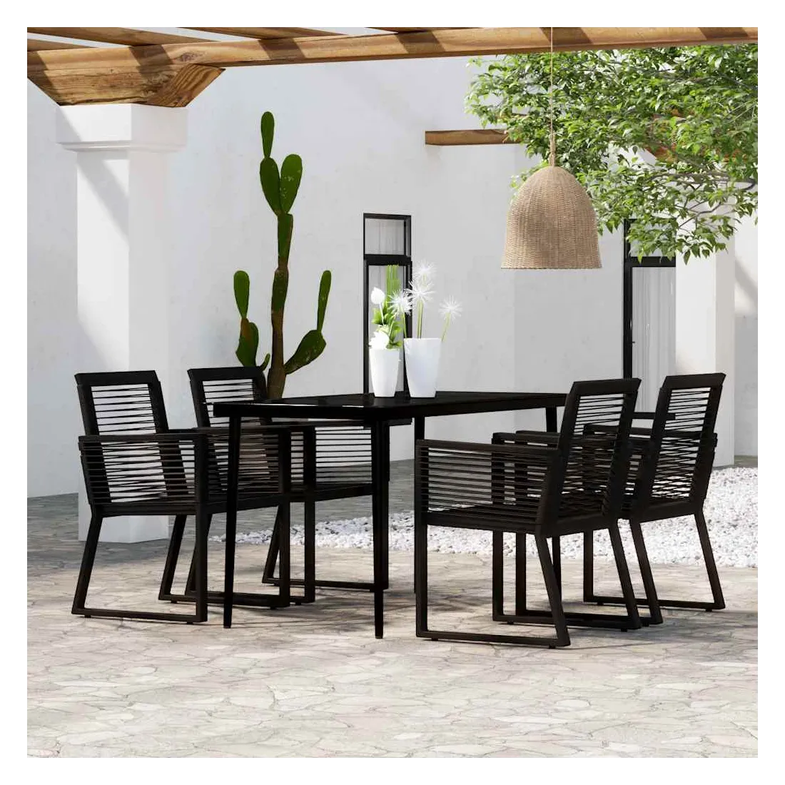 Créez une esthétique convaincante et uniforme dans votre espace extérieur avec cet ensemble de salle à manger de jardin ! Cette table de salle à manger est fabriquée avec un cadre en acier enduit de poudre, robuste et stable pour une utilisation quotidienne à l'extérieur. Le dessus de table en verre lisse est facile à nettoyer avec un chiffon humide et est parfait pour placer des repas, des boissons et d'autres objets décoratifs. Les chaises de jardin sont fabriquées en rotin PVC, tissé sur un cadre en acier laqué fin, ce qui les rend stables et résistantes aux intempéries et aux rayons UV. Remarque : afin de prolonger la durée de vie des meubles d'extérieur, nous vous recommandons de les protéger avec une housse imperméable.