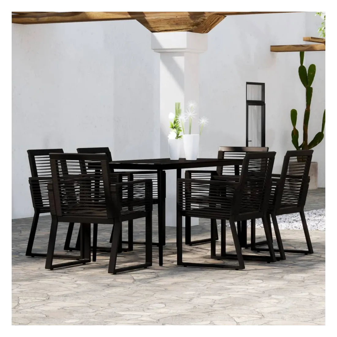 Ensemble à manger de jardin 7 pcs Noir