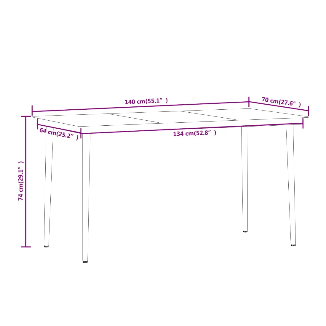 • Dimensions : 140 x 70 x 74 cm (L x l x H)