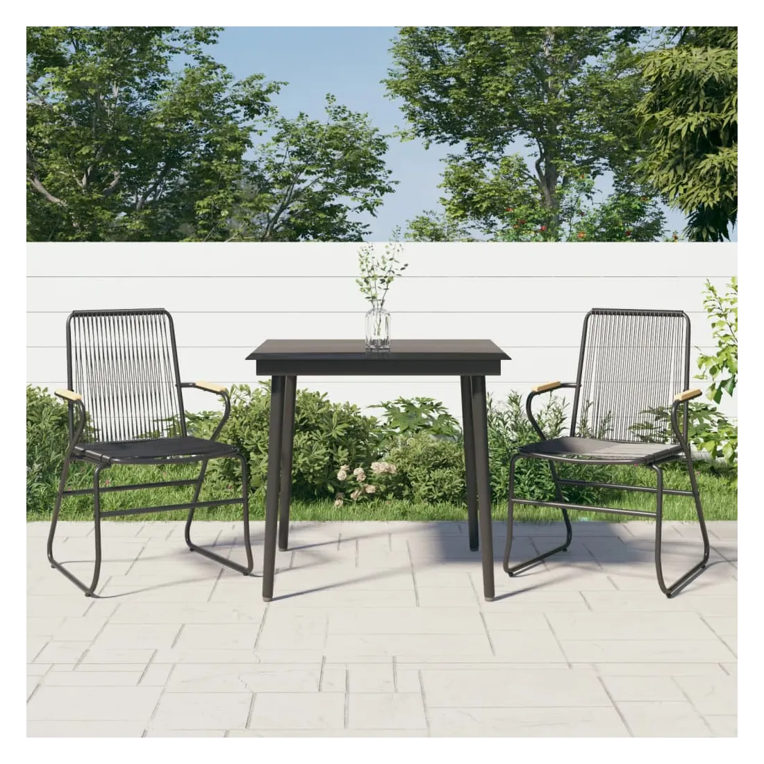 Ensemble à manger de jardin 3 pcs noir rotin PVC