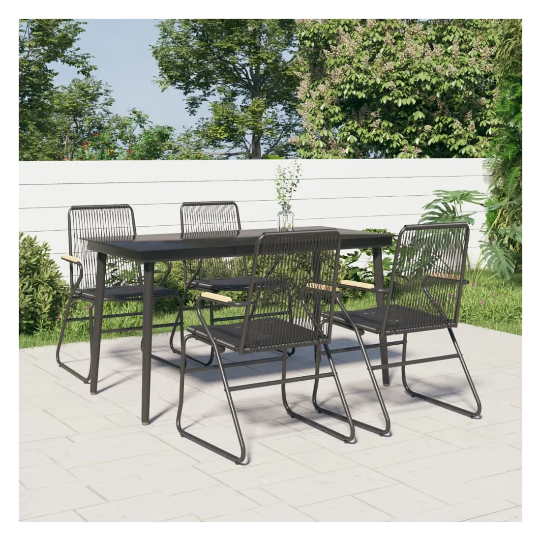 Ensemble à manger de jardin 5 pcs Noir Rotin PVC