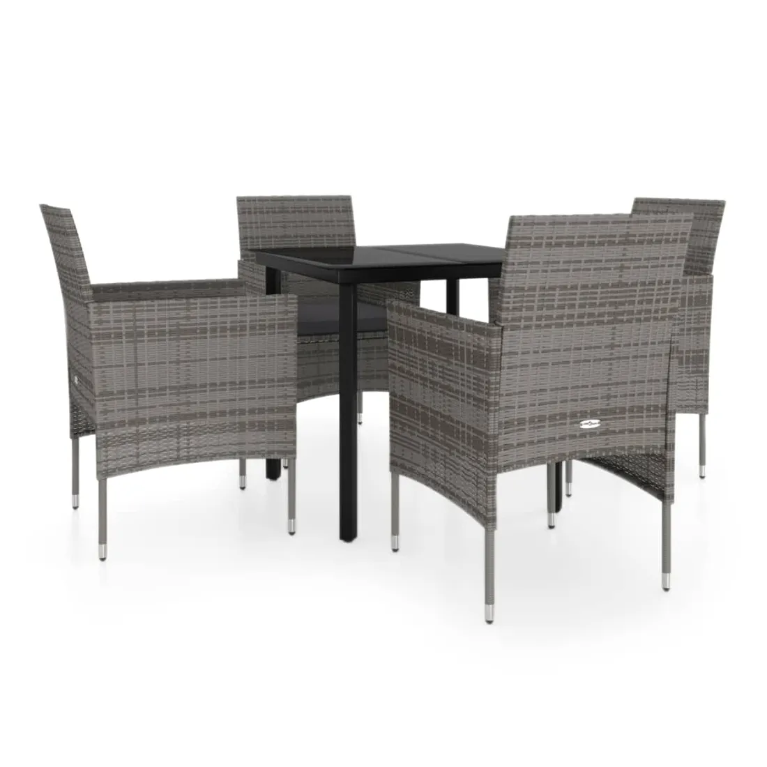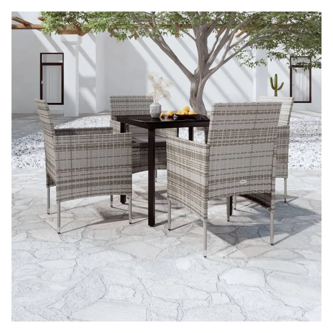 Ensemble à manger de jardin et coussins 5pcs Gris/noir