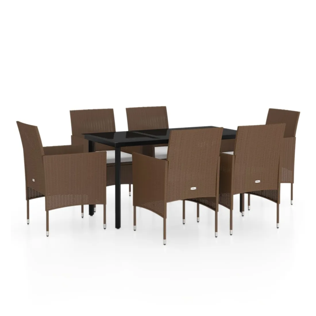 Ensemble à manger de jardin coussins 7 pcs Marron/noir