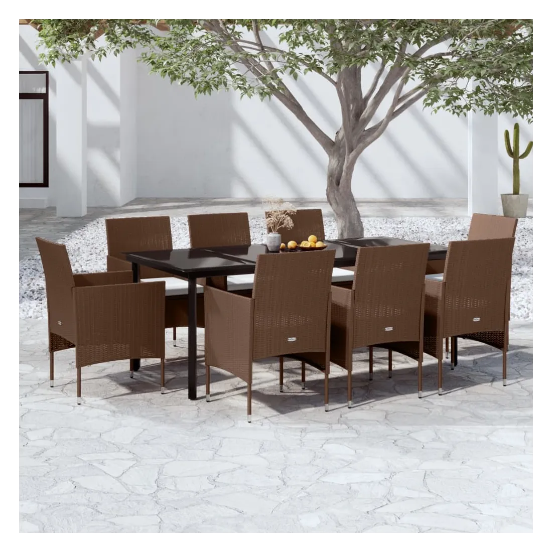 Ensemble à manger de jardin coussins 9 pcs Marron/noir