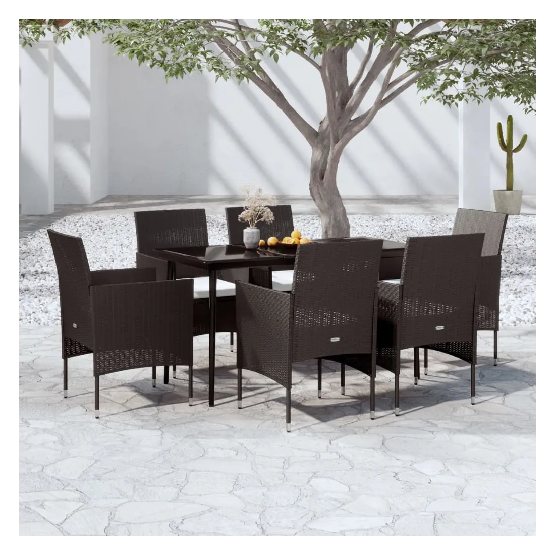 Cet ensemble de salle à manger de jardin est un excellent choix pour manger ou vous détendre dans l'espace extérieur ! Les cadres en acier enduit de poudre rendent la table et les chaises robustes et stables pour une utilisation quotidienne à l'extérieur. Grâce à la résine tressée résistante à l’eau, les chaises sont faciles à nettoyer et conviennent à un usage quotidien. Le dessus de table en verre lisse est facile à nettoyer avec un chiffon humide et parfait pour placer les repas, les boissons et autres articles décoratifs. Remarque : afin de prolonger la durée de vie des meubles d'extérieur, nous vous recommandons de les protéger avec une housse imperméable.