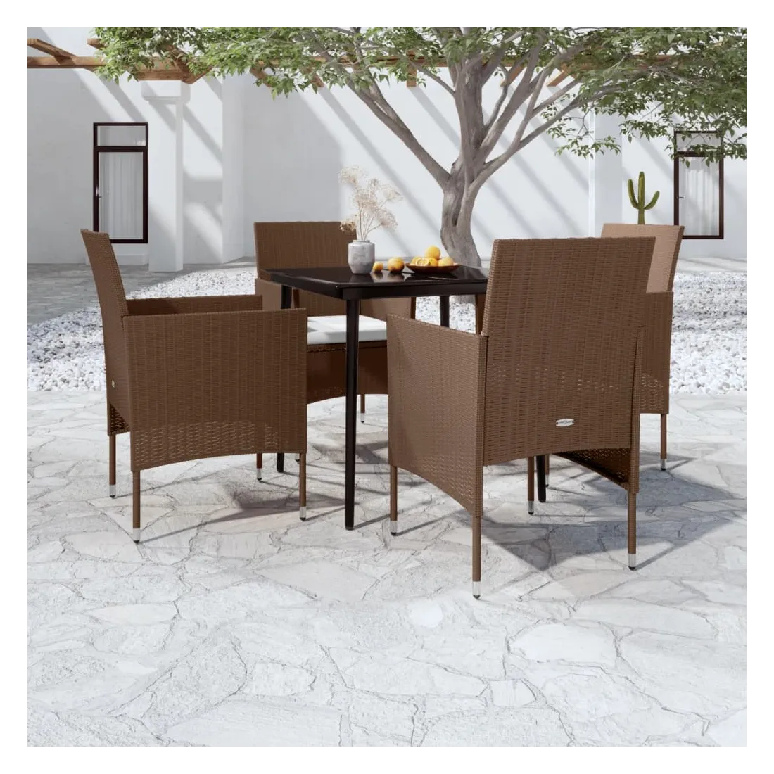 Ensemble à manger de jardin coussins 5 pcs Marron/noir