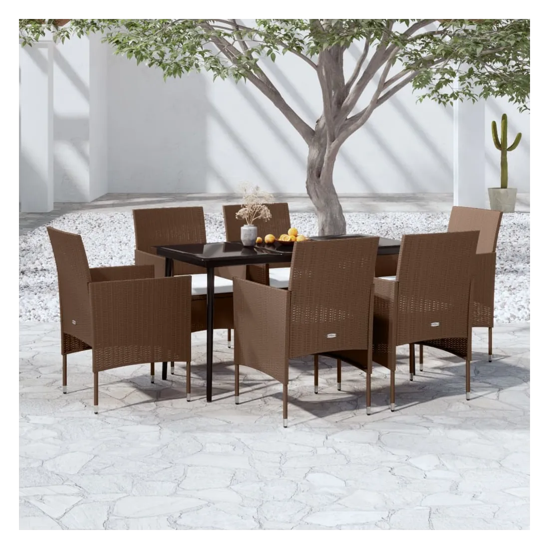 Ensemble à manger de jardin coussins 7 pcs Marron/noir