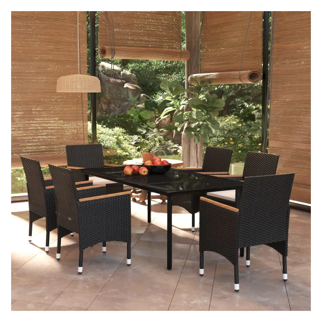 • Matériau : résine tressée, acier enduit de poudre, verre, bois d'acacia massif