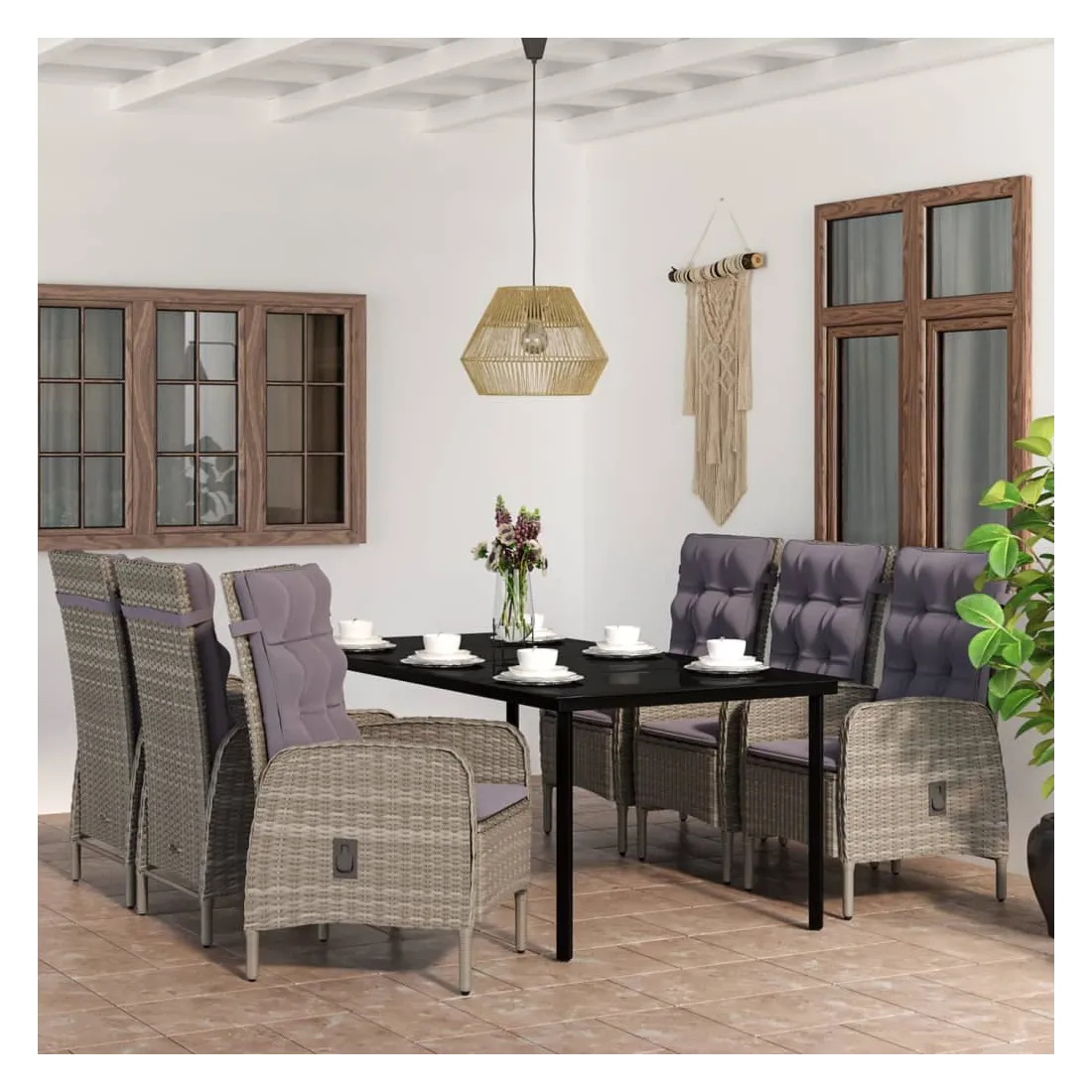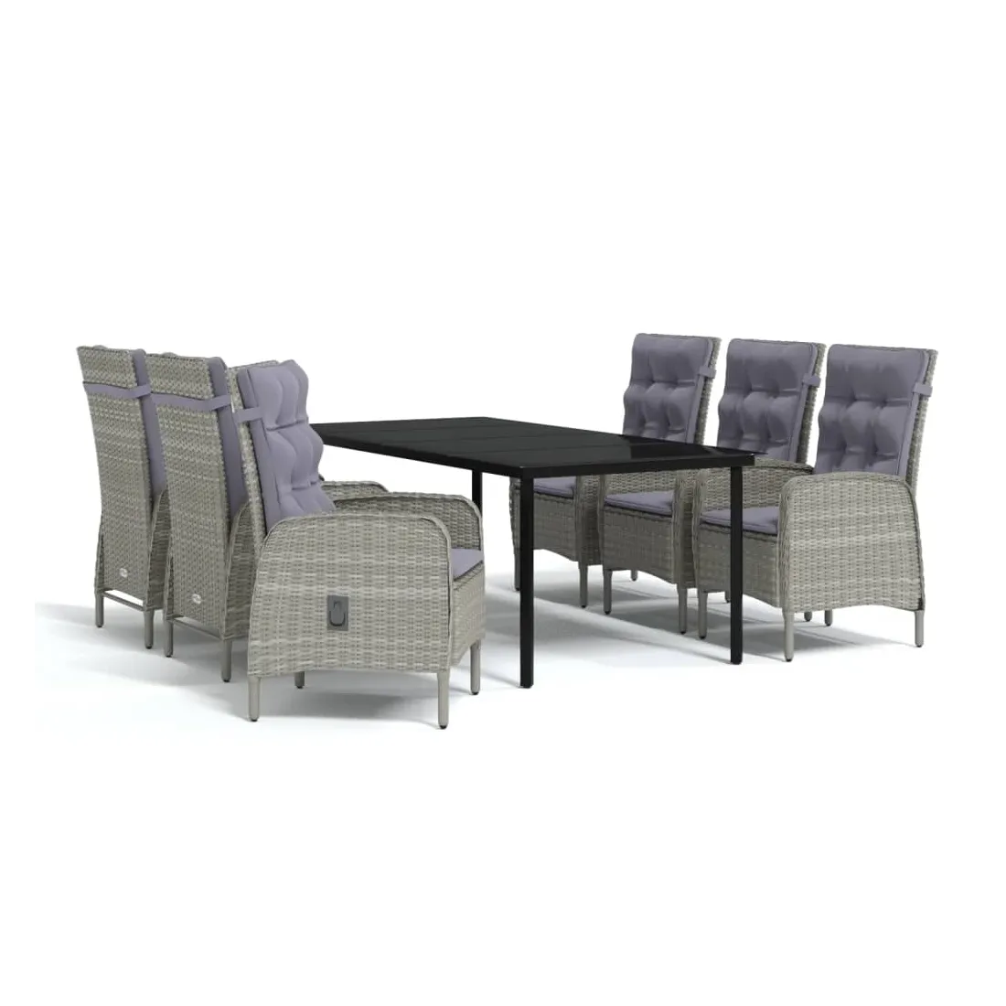 Ensemble à manger de jardin coussins 7pcs Gris et noir