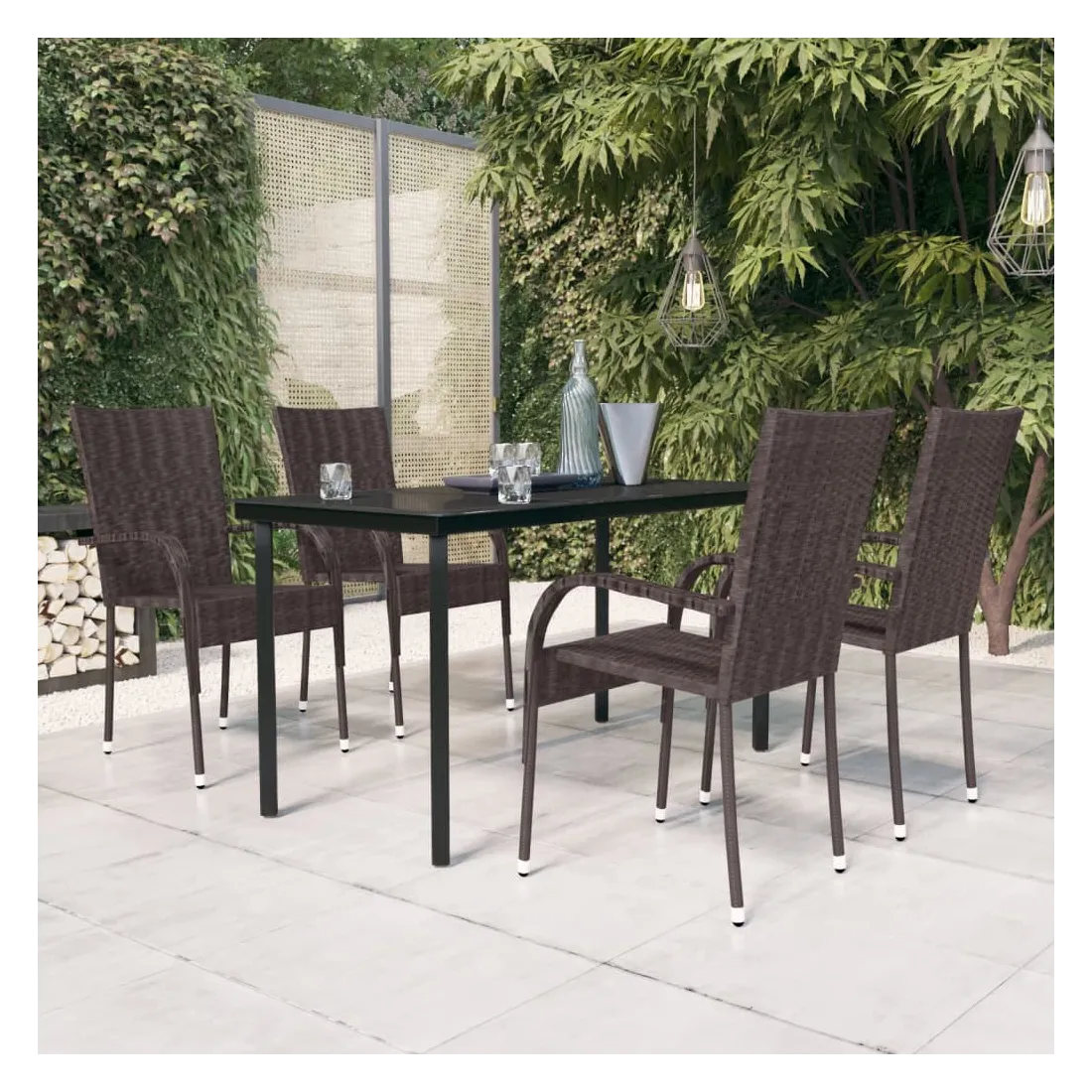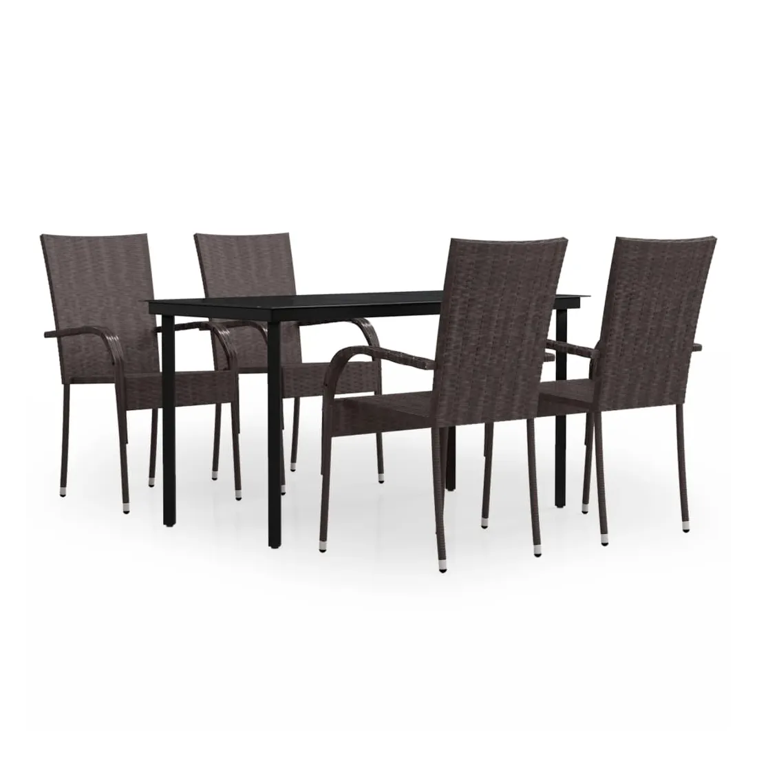 Ensemble à manger de jardin 5 pcs Marron et noir
