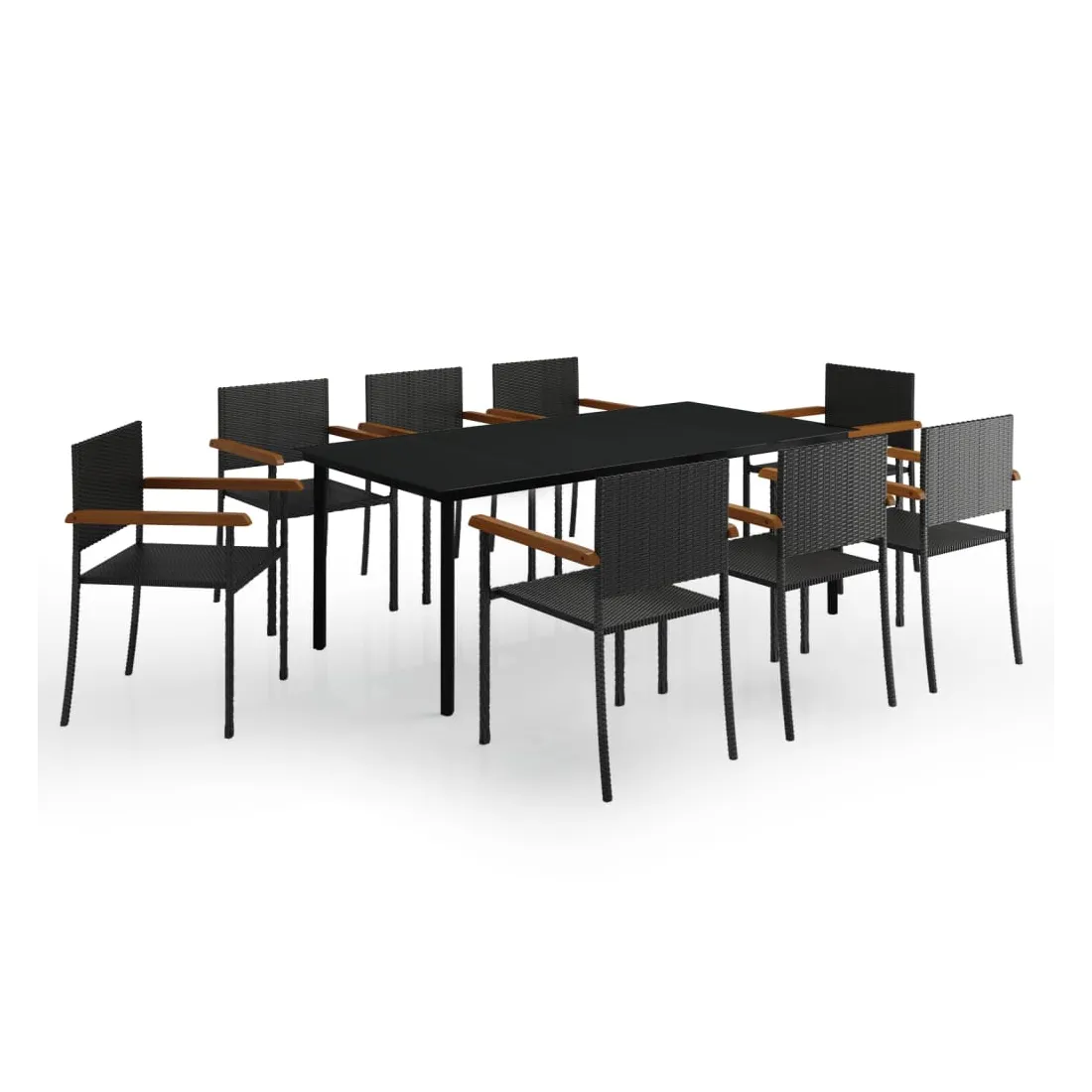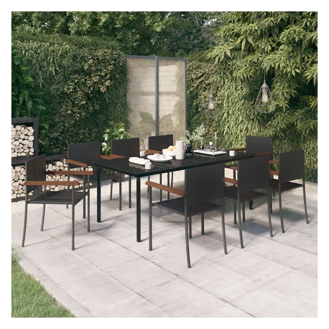 Cet élégant ensemble de salle à manger de jardin est destiné à être le point de mire de votre jardin ou patio ! C'est un excellent choix pour les repas en plein air ou pour vous détendre dans l'espace extérieur ! Les cadres en acier enduit de poudre rendent la table et les chaises robustes et stables pour une utilisation quotidienne en extérieur. Grâce à la résine tressée résistante à l’eau, les chaises sont faciles à nettoyer et résistantes à l'usure. Le dessus de table en verre lisse est facile à nettoyer avec un chiffon humide et parfait pour placer les repas, les boissons et autres articles décoratifs. Remarque : afin de prolonger la durée de vie des meubles d'extérieur, nous vous recommandons de les protéger avec une housse imperméable.