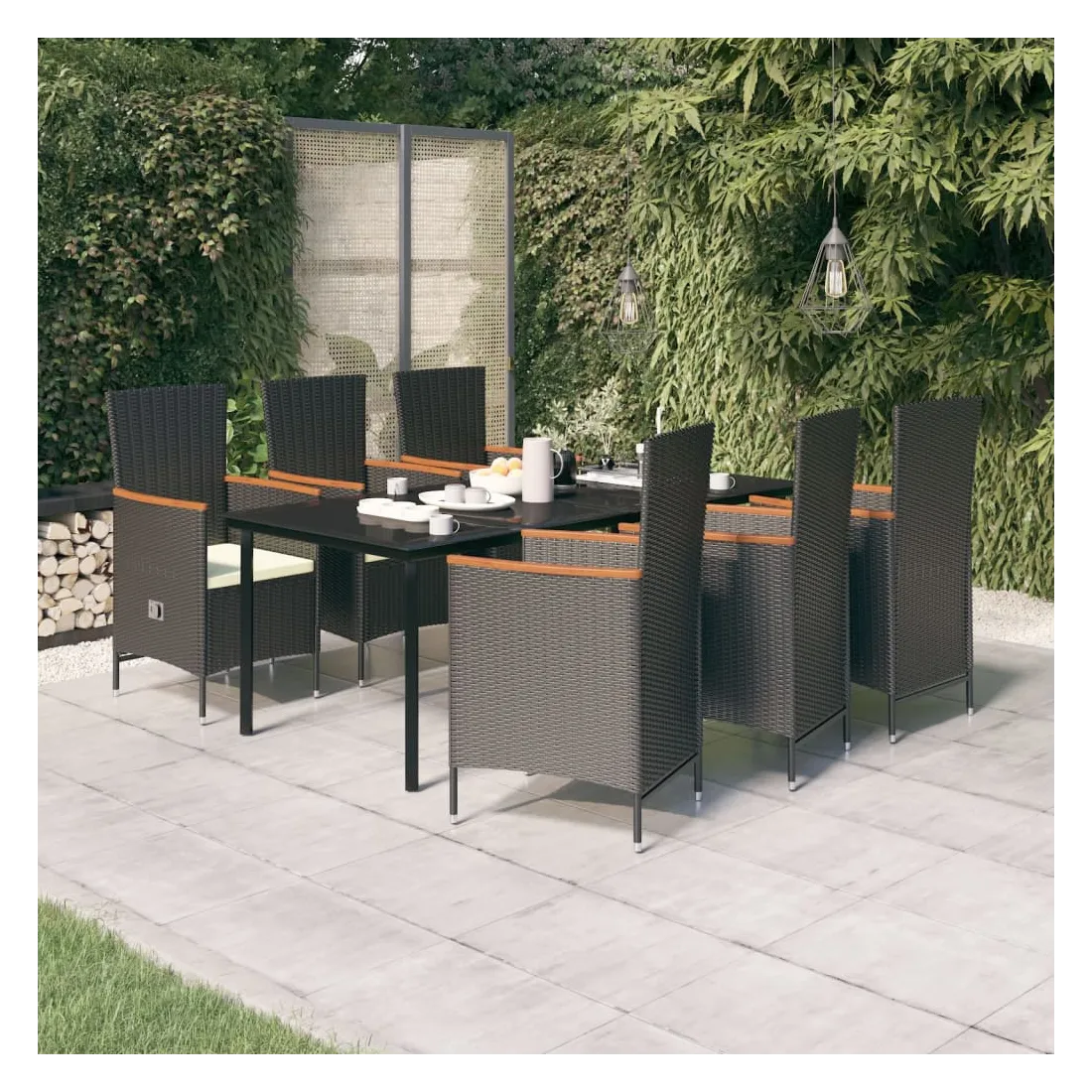 Ensemble à manger de jardin avec coussins 7 pcs Noir