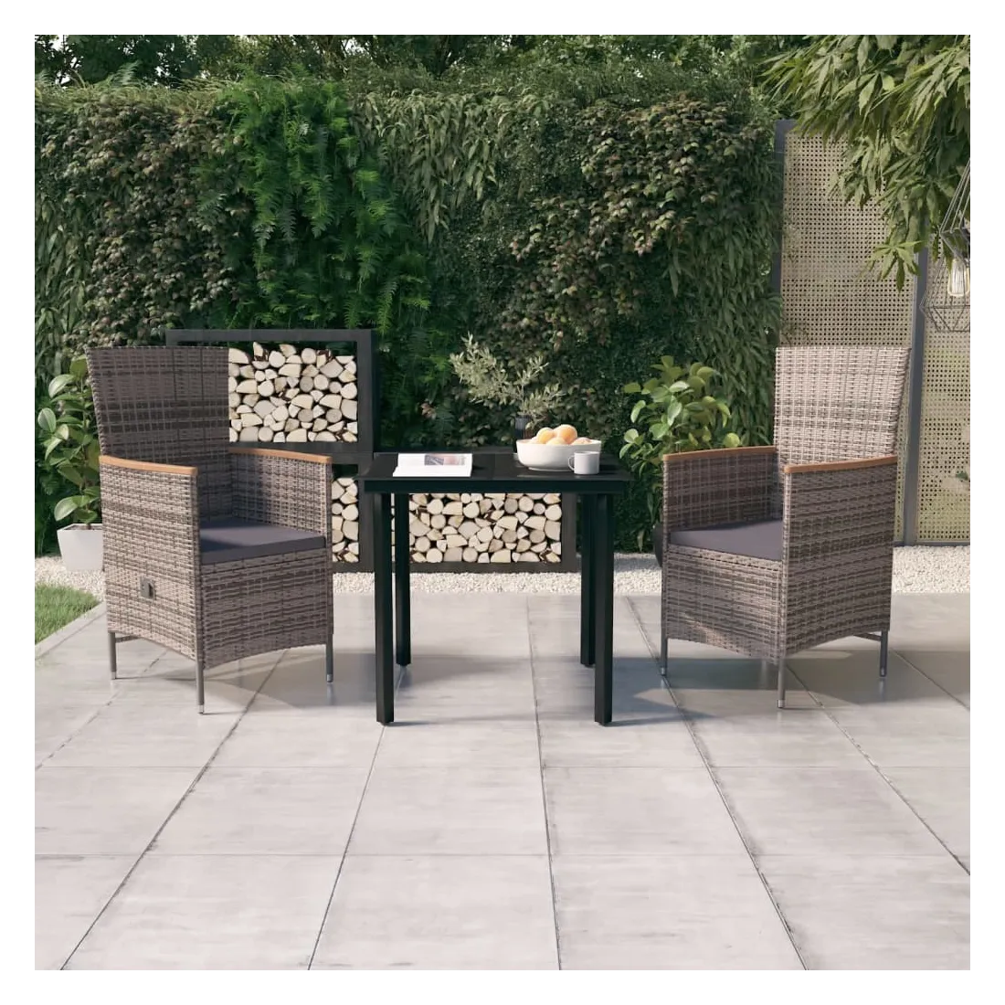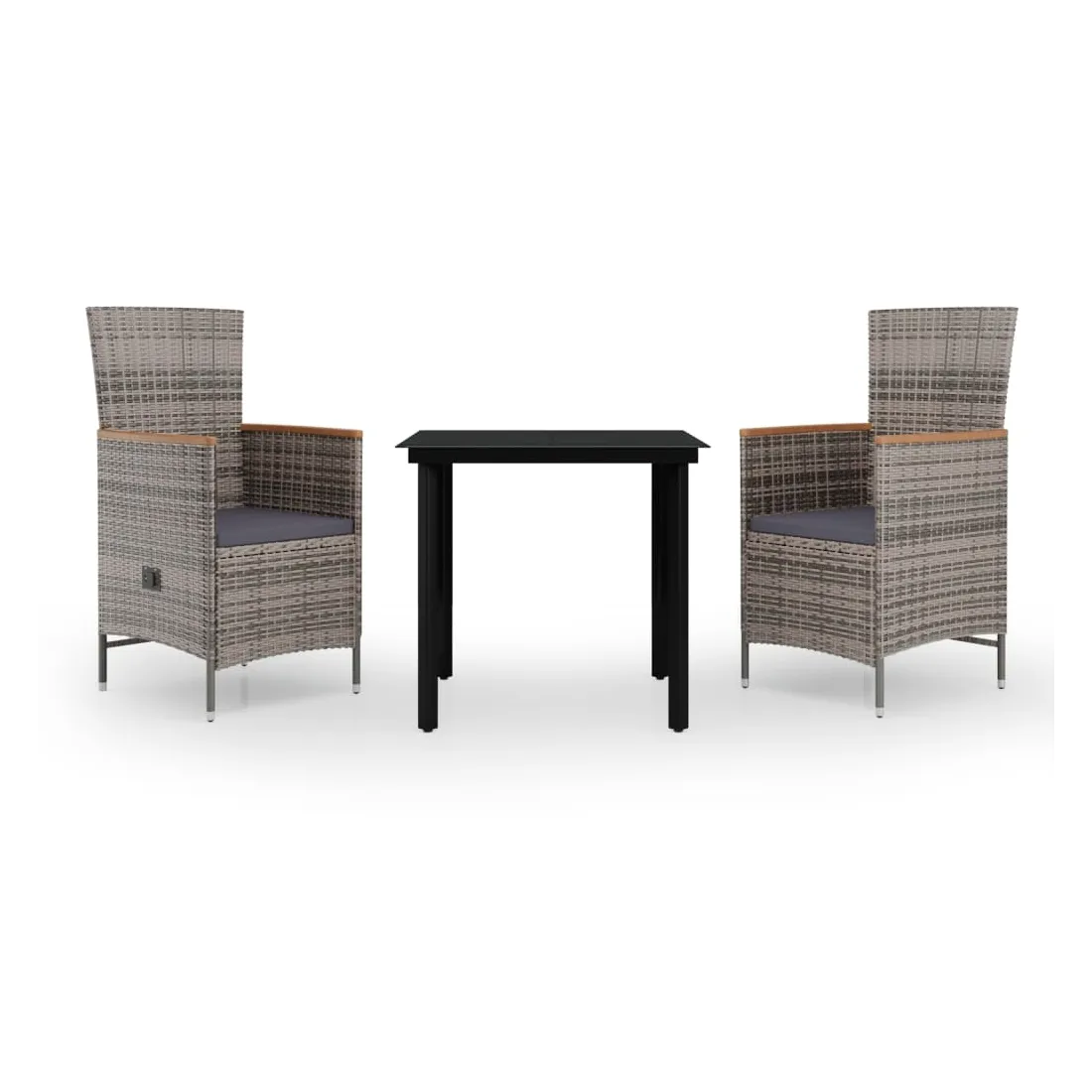 Ensemble à manger de jardin avec coussins 3 pcs Gris