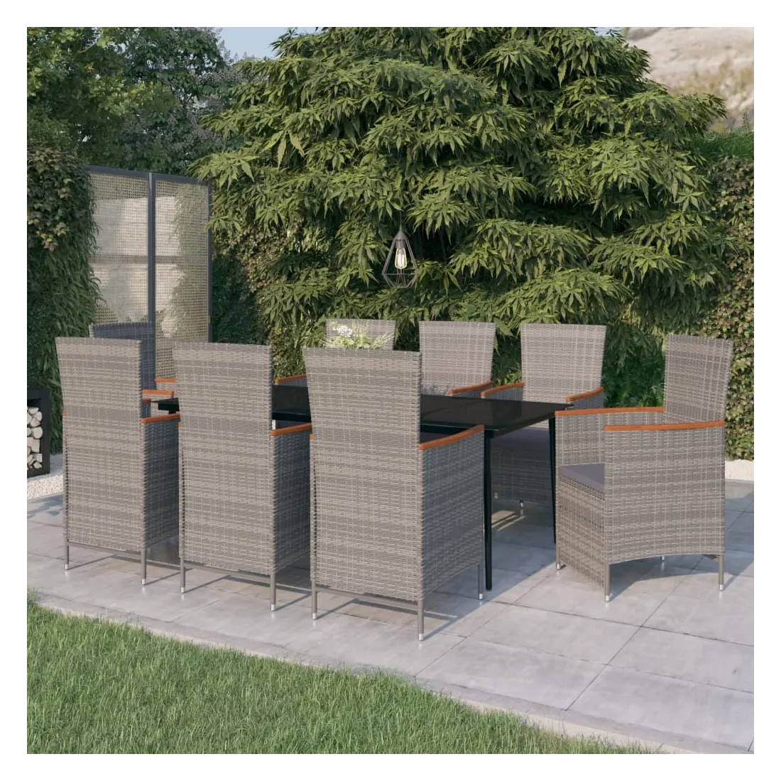 Ensemble à manger de jardin avec coussins 9 pcs Gris