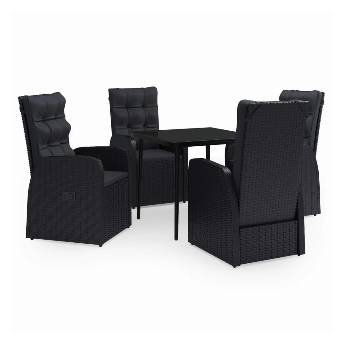 Cet élégant ensemble de salle à manger de jardin est destiné à être le point de mire de votre jardin ou patio ! C'est un excellent choix pour les repas en plein air ou pour vous détendre dans l'espace extérieur ! Les cadres en acier enduit de poudre rendent la table et les chaises robustes et stables pour une utilisation quotidienne à l'extérieur. Grâce à la résine tressée résistante à l'eau, les chaises sont faciles à nettoyer et résistantes à l'usure. Le dossier peut être ajusté en tirant sur le bouton sur le côté. Grâce à leur construction légère, elles sont faciles à déplacer. Les coussins de siège bien rembourrés ajoutent également un confort supplémentaire. Les housses en polyester nécessitant peu d'entretien peuvent être retirées et lavées. De plus, le dessus de table en verre l
