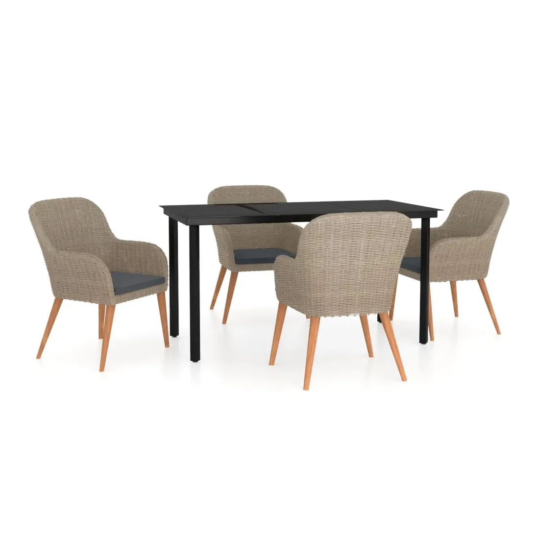 Ensemble à manger de jardin et coussins 5 pcs Marron