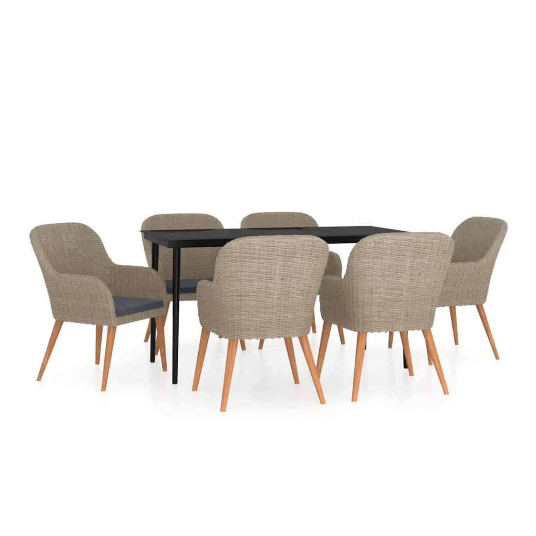 Ensemble à manger de jardin et coussins 7 pcs Marron