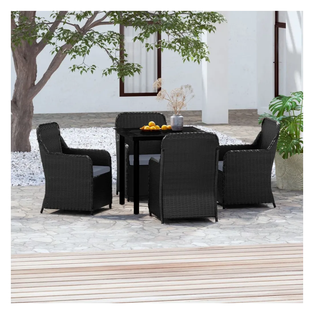 Ensemble à manger de jardin avec coussins 5 pcs Noir