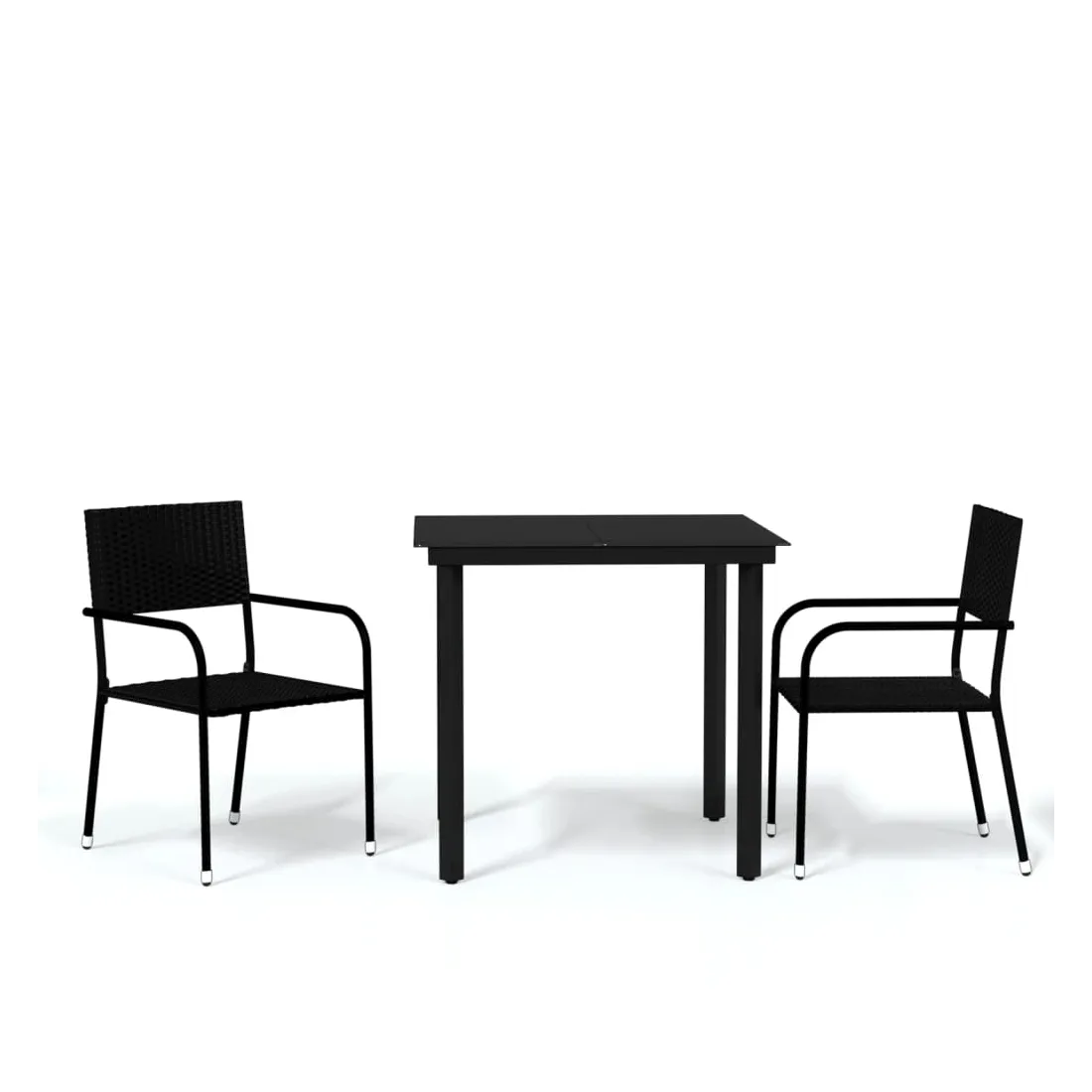 Profitez d'un bon repas ou d'un thé l'après-midi dans votre espace extérieur avec cet ensemble de salle à manger de jardin ! Ayant un design élégant, il deviendra le point central de votre jardin et de votre terrasse ! Cet ensemble de salle à manger d'extérieur pratique est doté d'un cadre en acier, ce qui le rend solide et robuste. Les chaises de jardin sont fabriquées en résine tressée résistante à l'eau et qui ne nécessite pas d'entretien, ce qui les rend parfaites pour une utilisation à l'extérieur. Ces chaises d'extérieur sont légères et peuvent être empilées pour gagner de la place lorsqu'elles ne sont pas utilisées. De plus, le dessus de table en verre lisse est facile à nettoyer à l'aide d'un chiffon humide et est excellent pour placer des repas, des boissons et d'autres objets décoratifs. Remarque : afin de prolonger la durée de vie des meubles d'extérieur, nous vous recommandons de les protéger avec une housse imperméable.