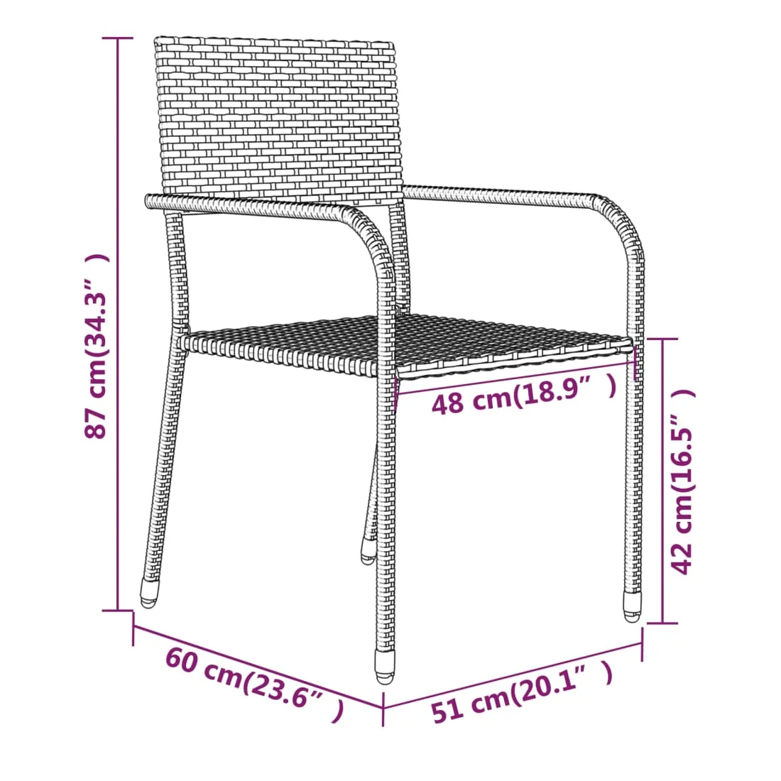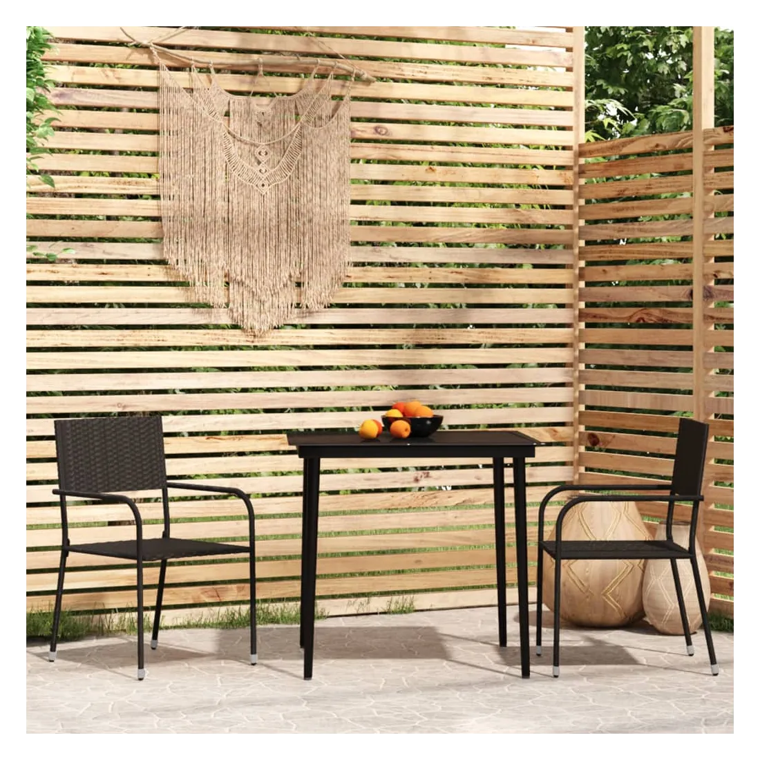 Profitez d'un bon repas ou d'un thé l'après-midi dans votre espace extérieur avec cet ensemble de salle à manger de jardin ! Ayant un design élégant, il deviendra le point central de votre jardin et de votre terrasse ! Cet ensemble de salle à manger d'extérieur pratique est doté d'un cadre en acier, ce qui le rend solide et robuste. Les chaises de jardin sont fabriquées en résine tressée résistante à l'eau et qui ne nécessite pas d'entretien, ce qui les rend parfaites pour une utilisation à l'extérieur. Ces chaises d'extérieur sont légères et peuvent être empilées pour gagner de la place lorsqu'elles ne sont pas utilisées. De plus, le dessus de table en verre lisse est facile à nettoyer à l'aide d'un chiffon humide et est excellent pour placer des repas, des boissons et d'autres objets décoratifs. Remarque : afin de prolonger la durée de vie des meubles d'extérieur, nous vous recommandons de les protéger avec une housse imperméable.