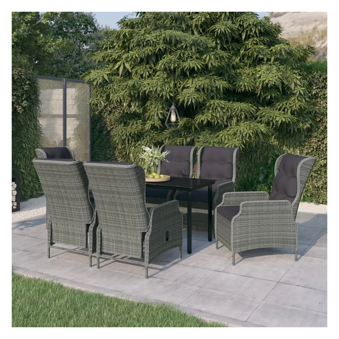 Profitez d'un bon repas ou d'un thé l'après-midi dans votre espace extérieur avec cet ensemble de salle à manger de jardin ! Ayant un design élégant, il deviendra le point central de votre jardin et de votre terrasse ! Cet ensemble de salle à manger d'extérieur pratique est doté d'un cadre en acier, ce qui le rend solide et robuste. Les chaises inclinables de jardin sont fabriquées en résine tressée résistante à l'eau et sans entretien, ce qui les rend parfaites pour une utilisation en extérieur. Les coussins bien rembourrés ajoutent un confort supplémentaire à vos repas. Les housses des coussins sont équipées d'une fermeture éclair et sont amovibles et lavables. Grâce au mécanisme de levage à gaz, le dossier est également réglable pour s'adapter à vos positions. En touchant le bouton