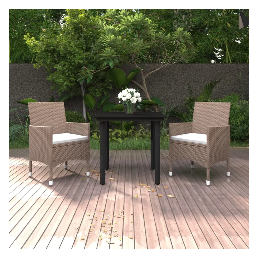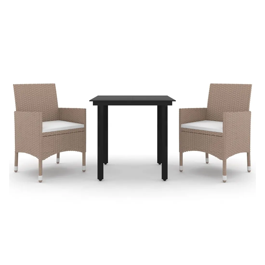 vidaXLCet ensemble élégant de salle à manger de jardin vous permet de passer des moments agréables et confortables avec votre famille et vos amis. Le cadre en acier enduit de poudre rend la table et les chaises robustes et durables. Fabriquées en résine tressée résistante aux intempéries et imperméable, les chaises sont faciles à nettoyer, résistantes à l'usure et adaptées à un usage quotidien. Le dessus de table en verre lisse est idéal pour poser des boissons, de la nourriture ou des objets décoratifs. De plus, le coussin de siège bien rembourré ajoute un confort supplémentaire aux chaises. Remarque : afin de prolonger la durée de vie des meubles d'extérieur, nous vous recommandons de les protéger avec une housse imperméable.