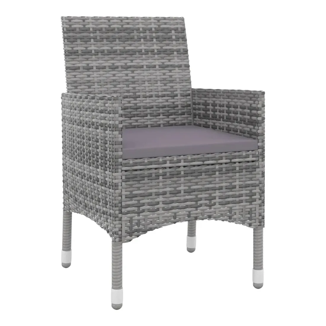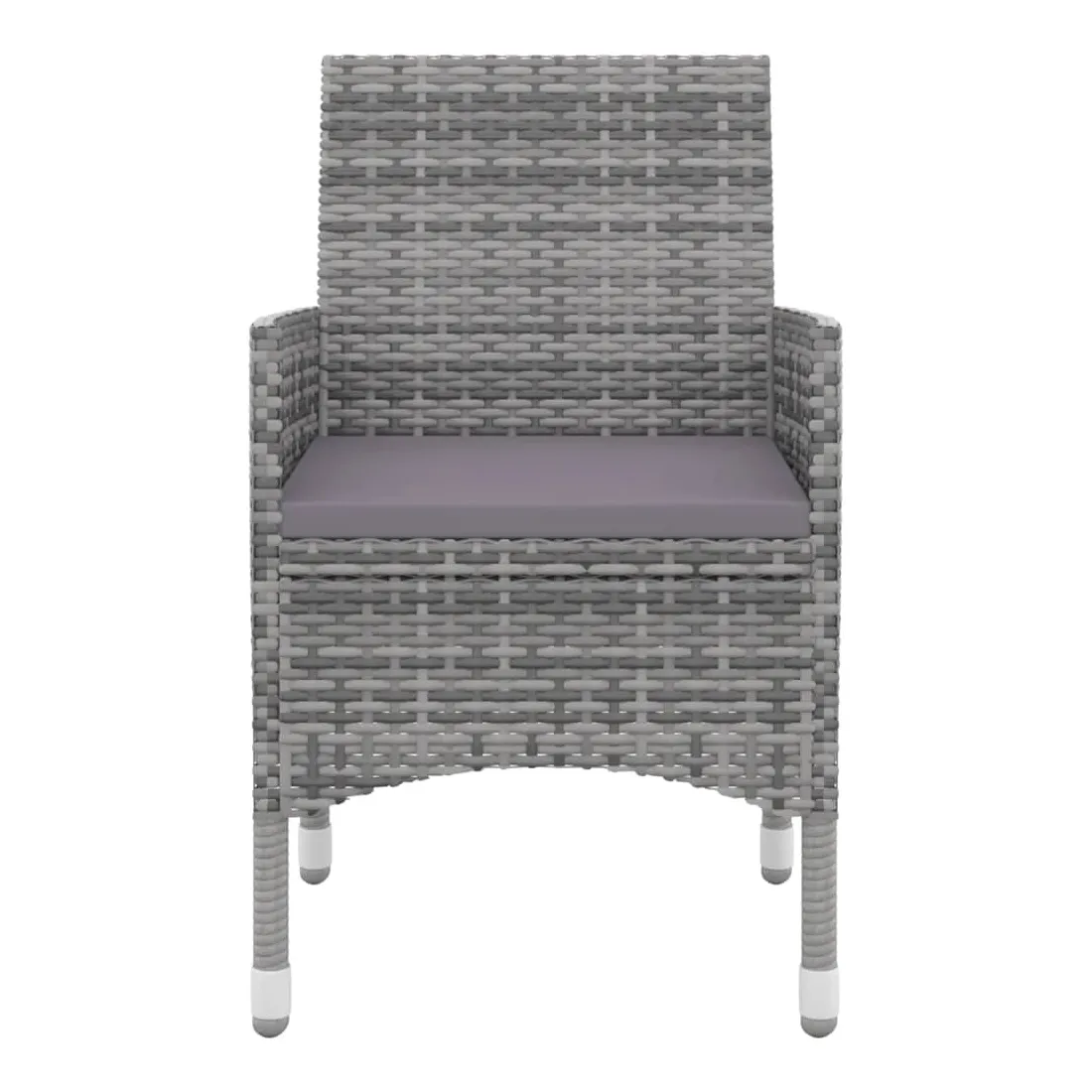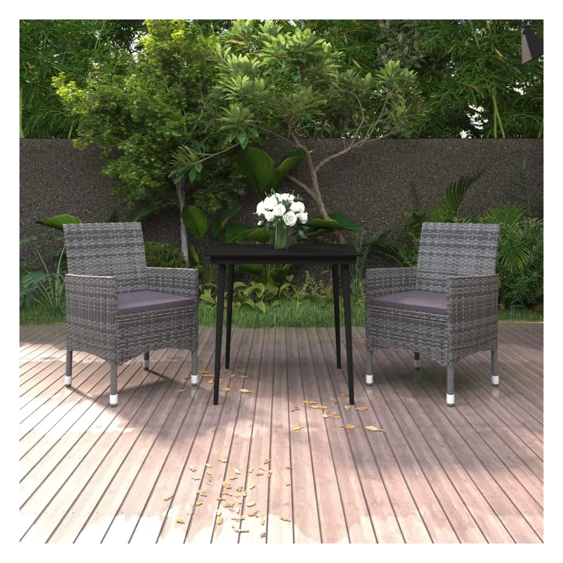 Cet ensemble élégant de salle à manger de jardin vous permet de passer des moments agréables et confortables avec votre famille et vos amis. Le cadre en acier enduit de poudre rend la table et les chaises robustes et durables. Fabriquées en résine tressée résistante aux intempéries et imperméable, les chaises sont faciles à nettoyer, résistantes à l'usure et adaptées à un usage quotidien. Le dessus de table en verre lisse est idéal pour poser des boissons, de la nourriture ou des objets décoratifs. De plus, le coussin de siège bien rembourré ajoute un confort supplémentaire aux chaises. Remarque : afin de prolonger la durée de vie des meubles d'extérieur, nous vous recommandons de les protéger avec une housse imperméable.