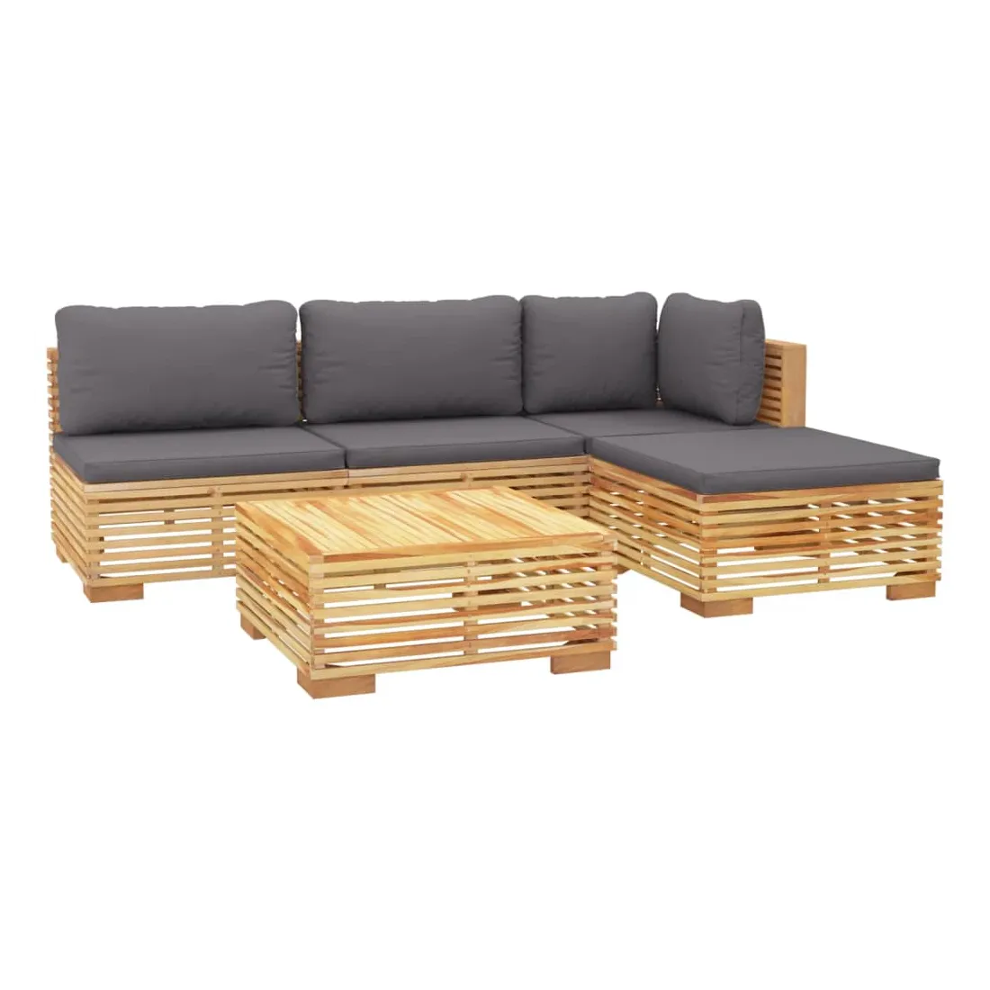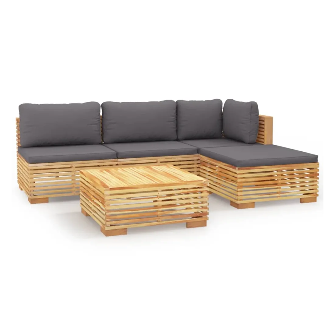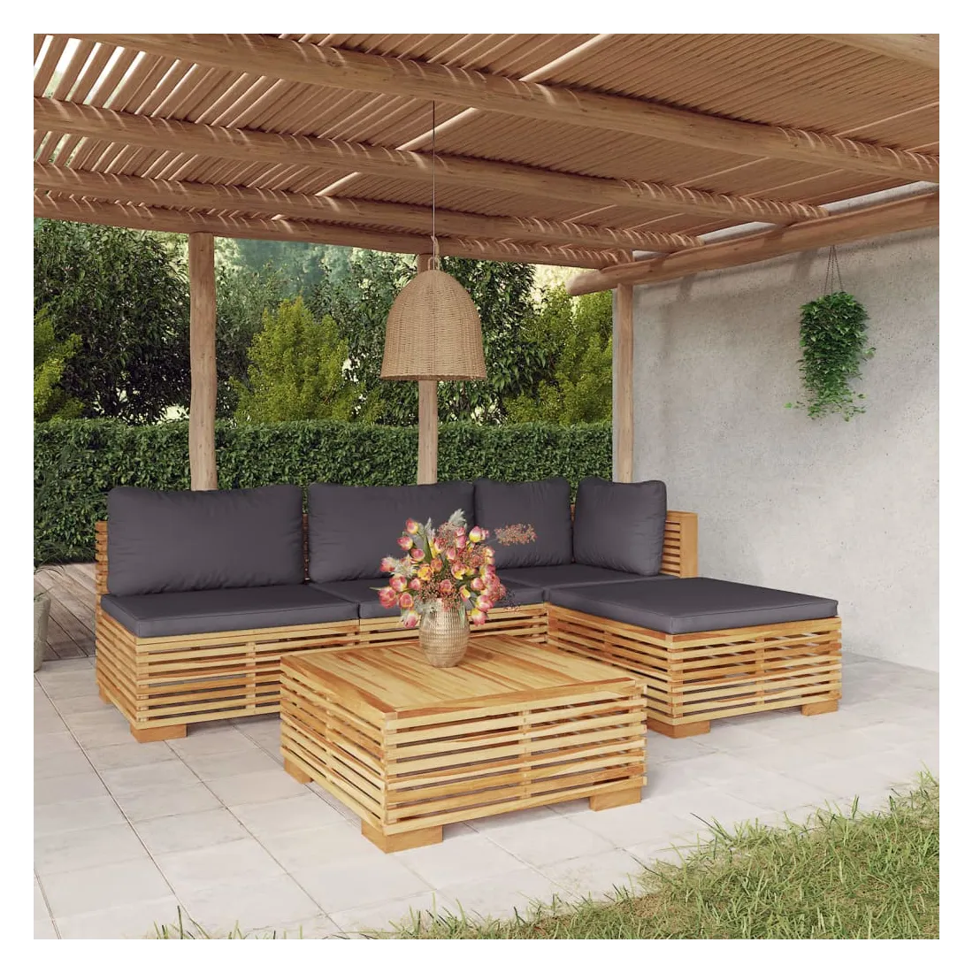 Salon de jardin 5 pcs avec coussins Bois de teck solide