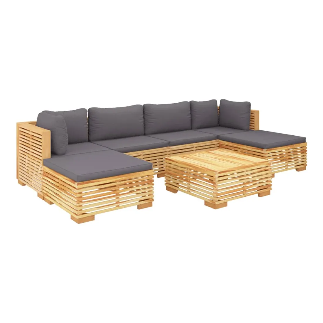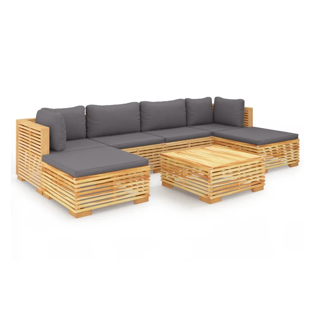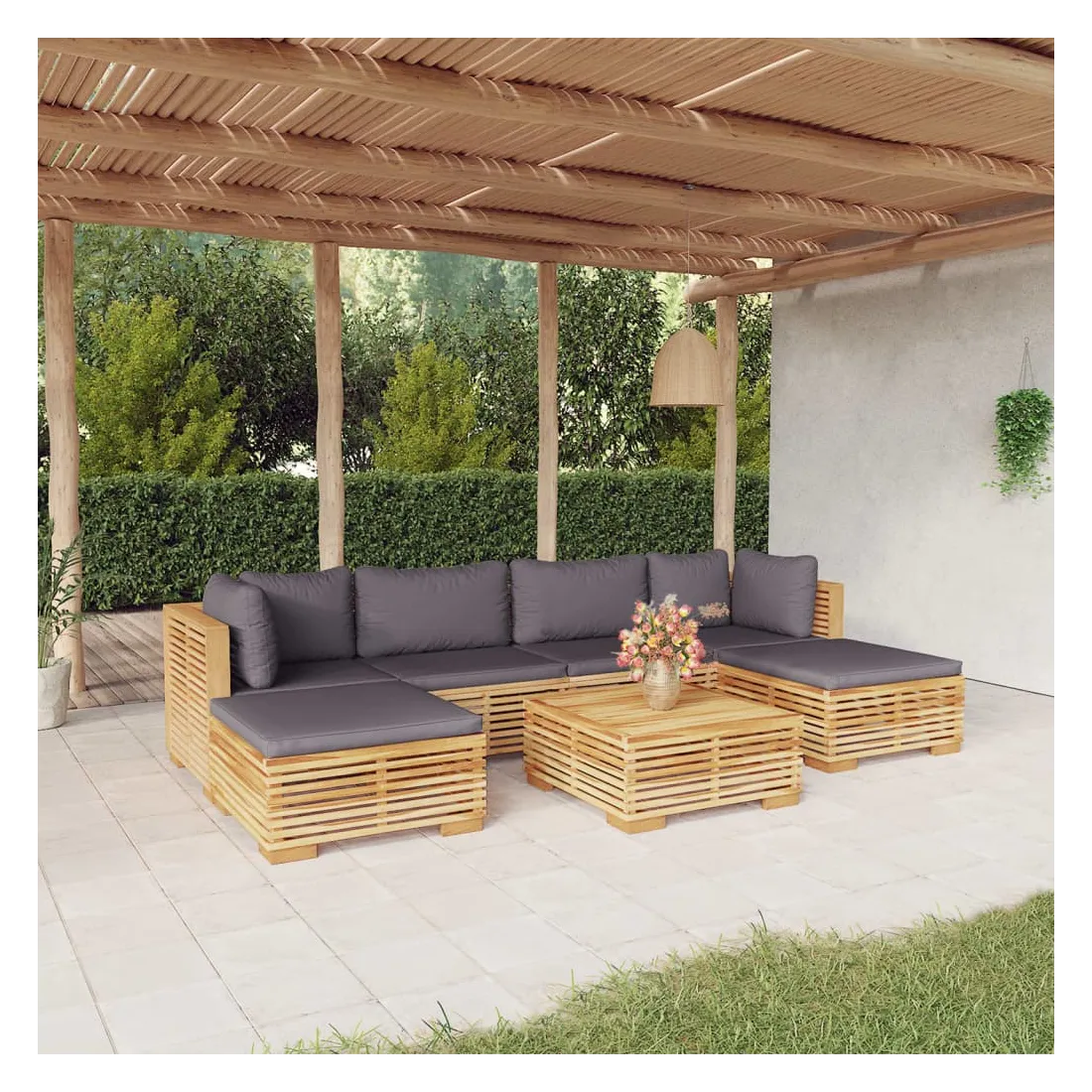 Salon de jardin 7 pcs avec coussins Bois de teck solide