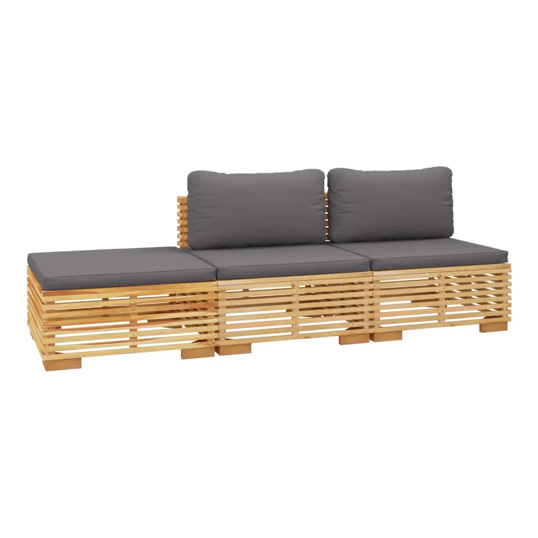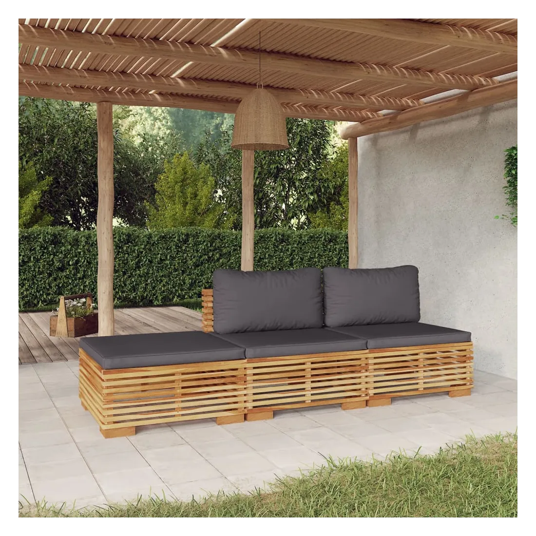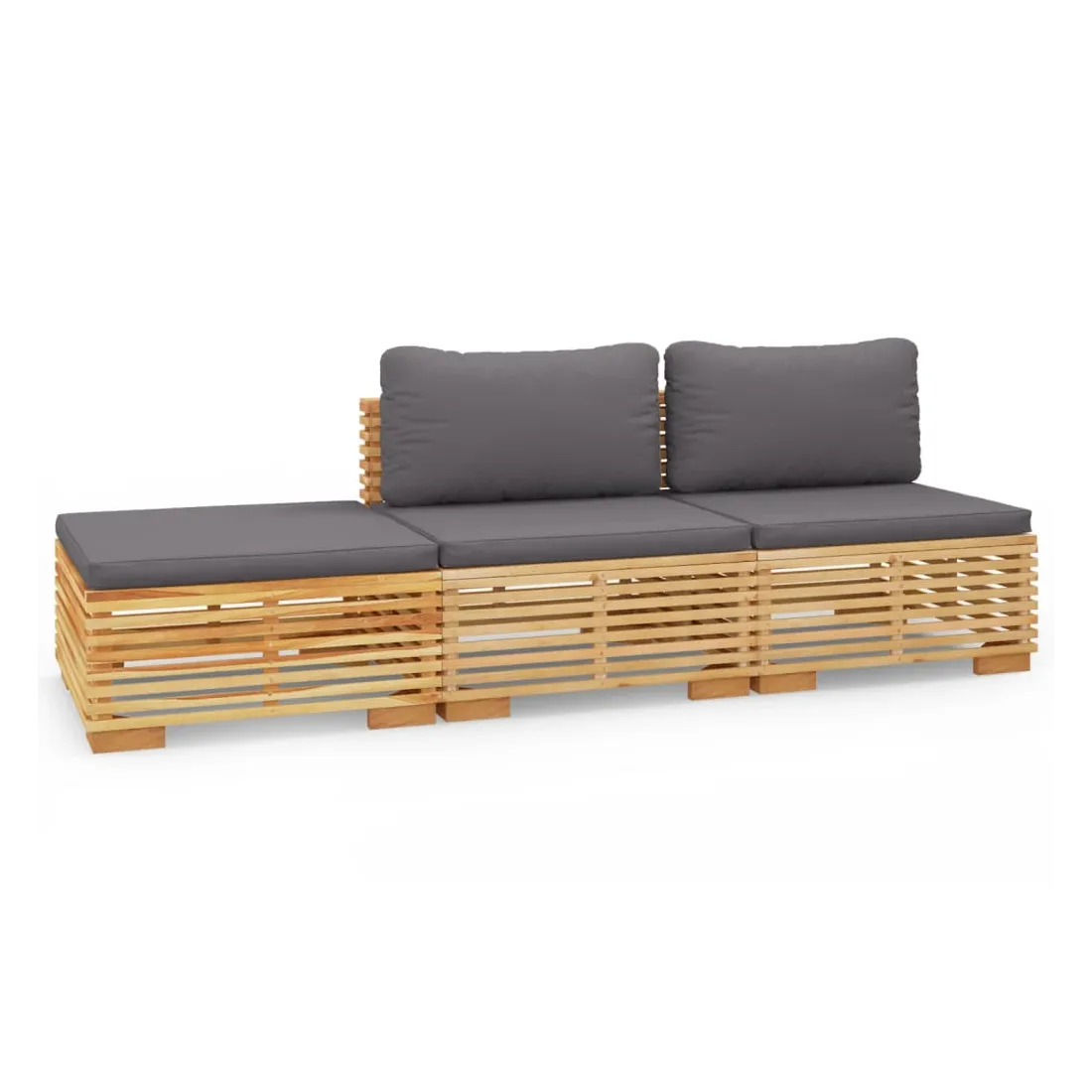 Salon de jardin 3 pcs avec coussins Bois de teck solide