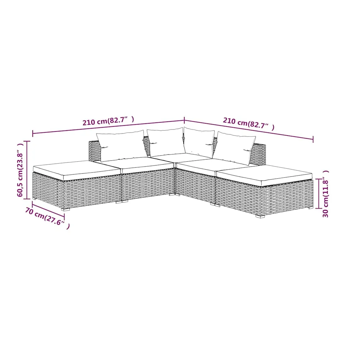 - Dimensions du canapé d'angle/central (chacun) : 70 x 70 x 60,5 cm (L x l x H)