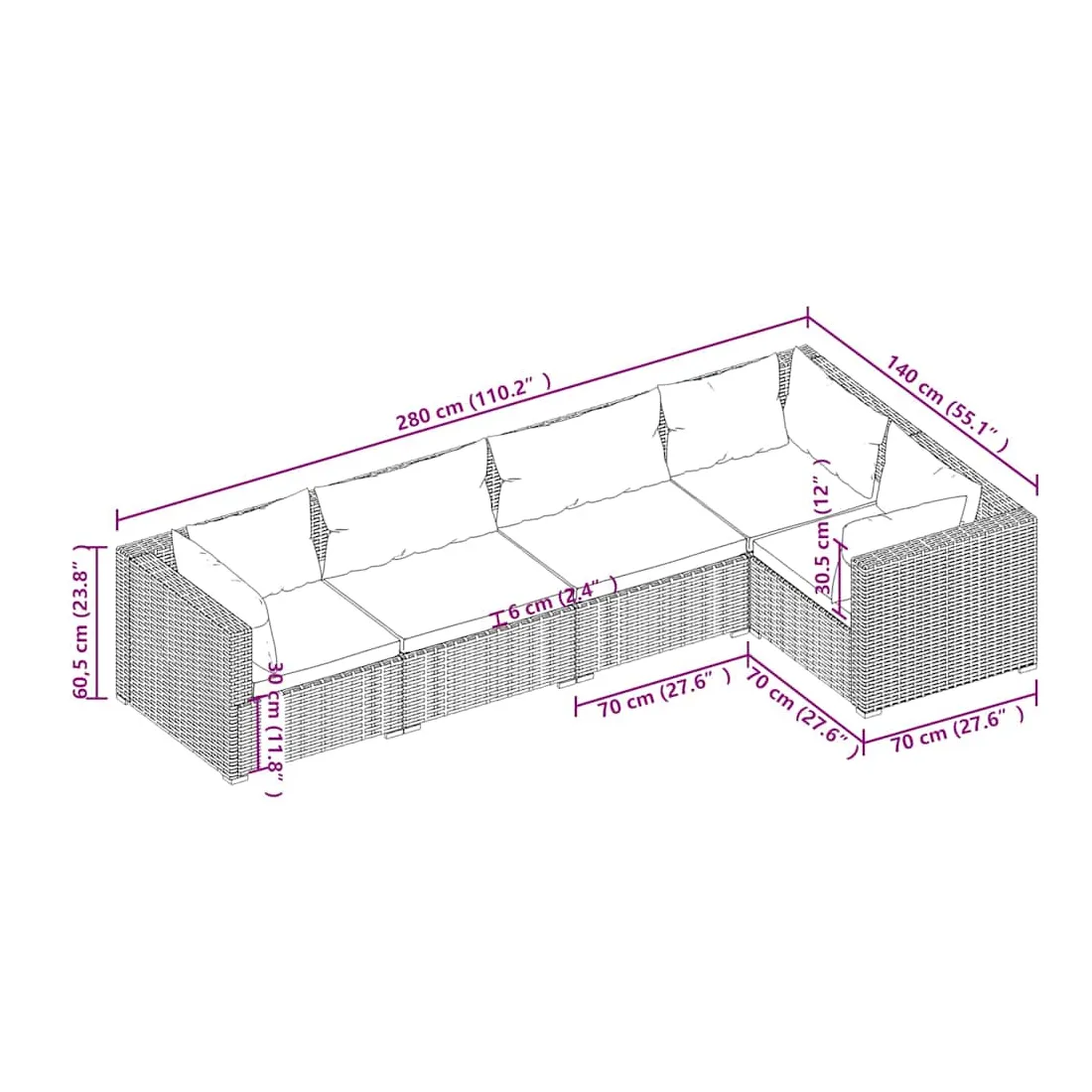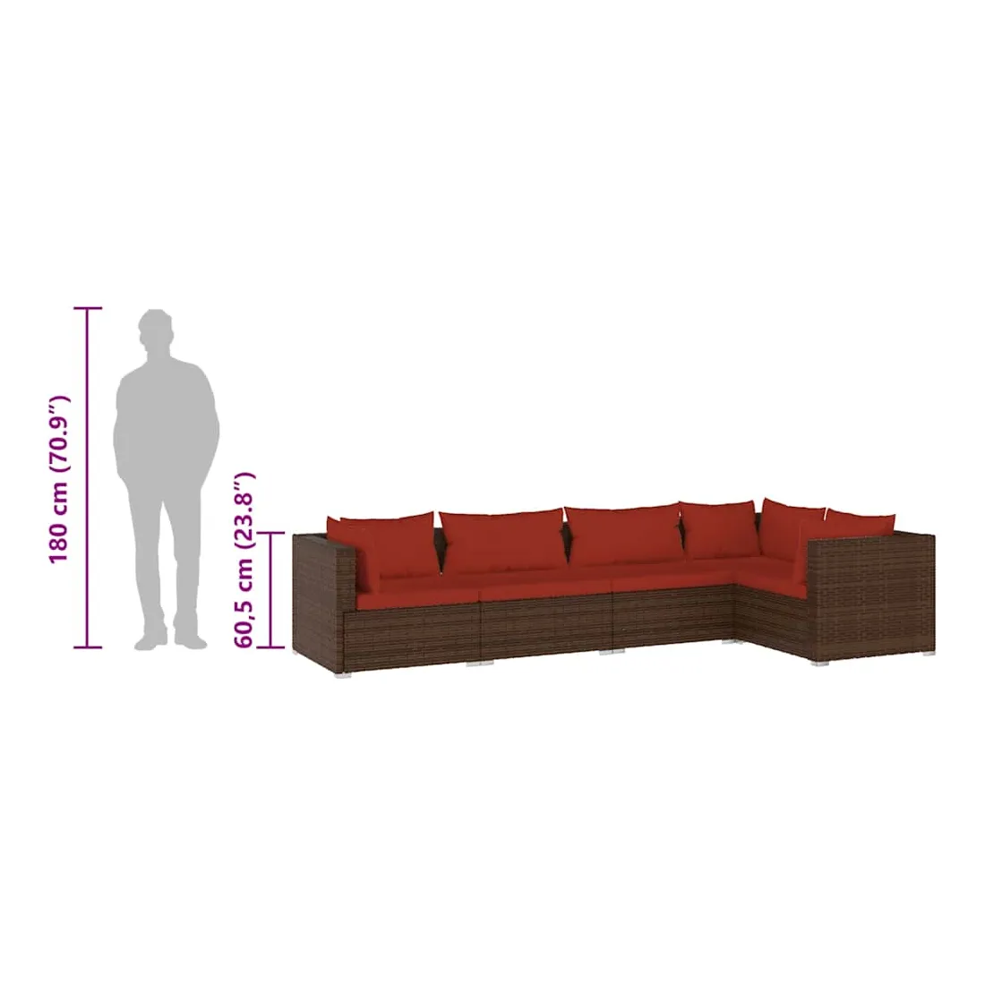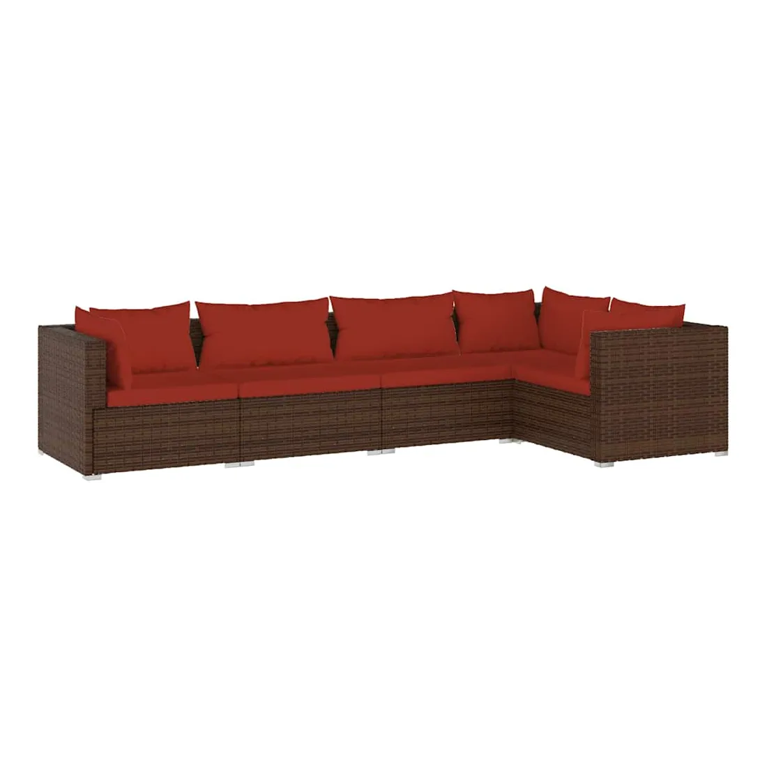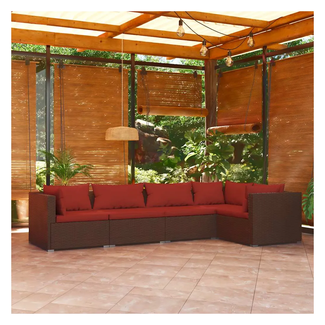 Salon de jardin 5 pcs avec coussins résine tressée marron
