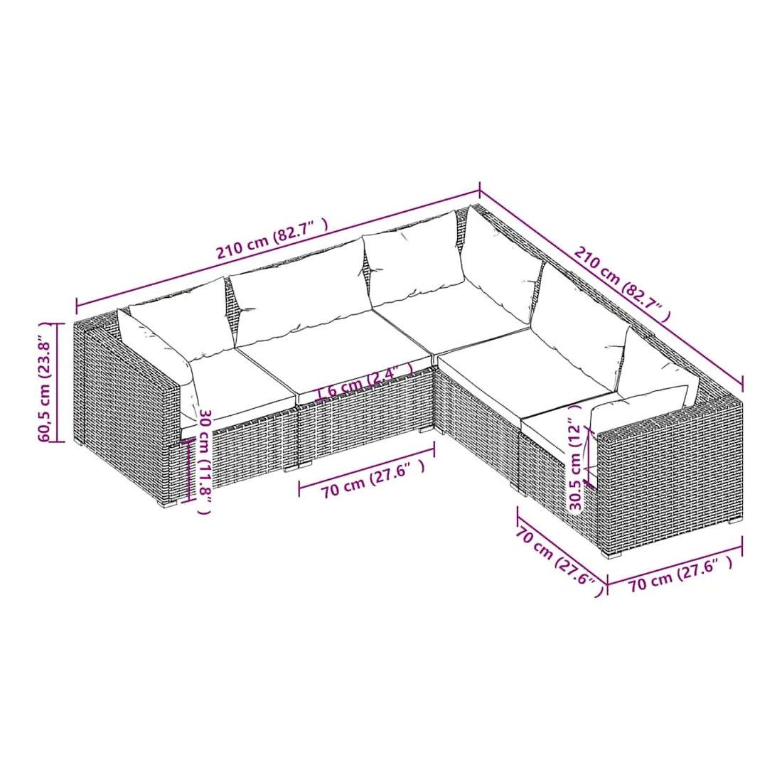 - Dimensions du canapé d'angle/central (chacun) : 70 x 70 x 60,5 cm (L x l x H)